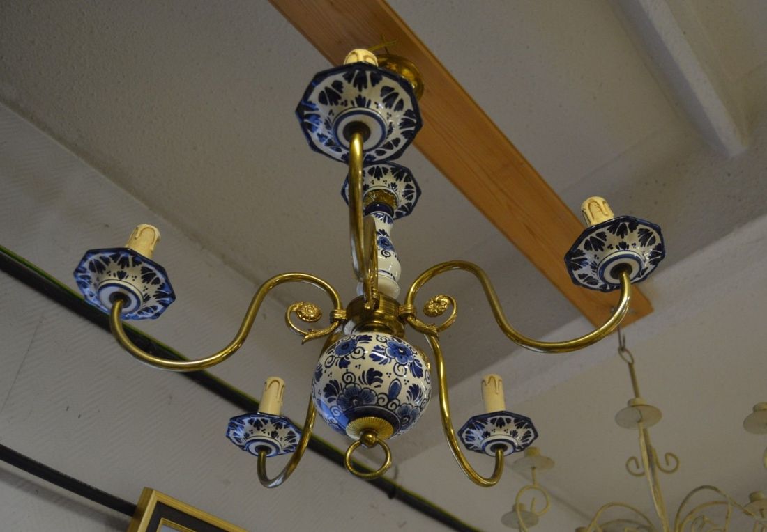 Läbimõõt 560, kõrgus 620 mm. 5 tk 14 pirnipesa. Ene kasutusele võttu soovitav lasta elektrikul üle vaadata. Mõned kriimud, täkked, kasutustunnused. Ilus sinine dekoor.