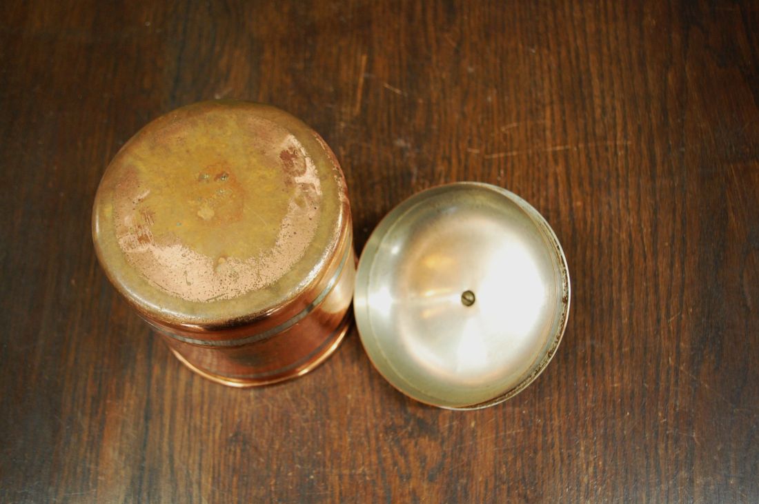 Läbimõõt 125mm, kõrgus 170mm. Kahevärviline kena vana Dorre, Rootsi metallnõu kaanega (sees hoitud kohvi). Esineb kriime, kulumist, kasutusjälgi. Tarne pakiautomaati