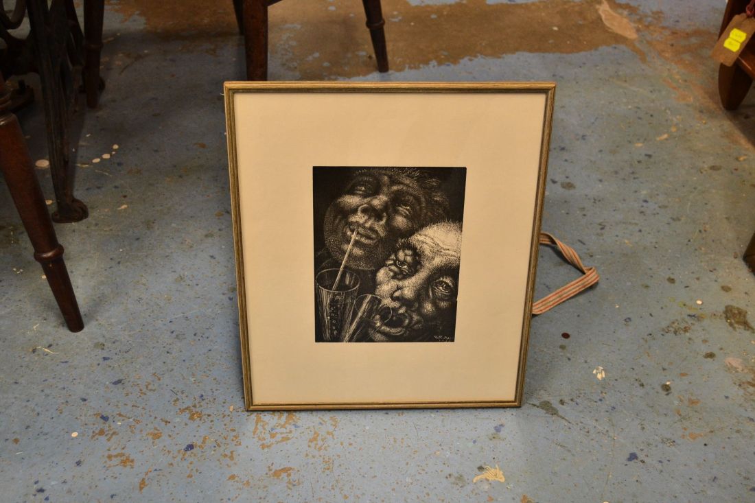 Mõõdud koos raamiga 225 x 315mm. Raamitud, klaasitud. Eduard Viiralt. Kolm naist Pehmelakk. 1932. Trükirepro aastast 1978. Mai Levini koostatud, Alfred Rõude kollektsiooonist originaalsuuruses reproduktsioon. Esineb kriime, täkkeid, kasutustunnuseid. Tarne pakiautomaati
