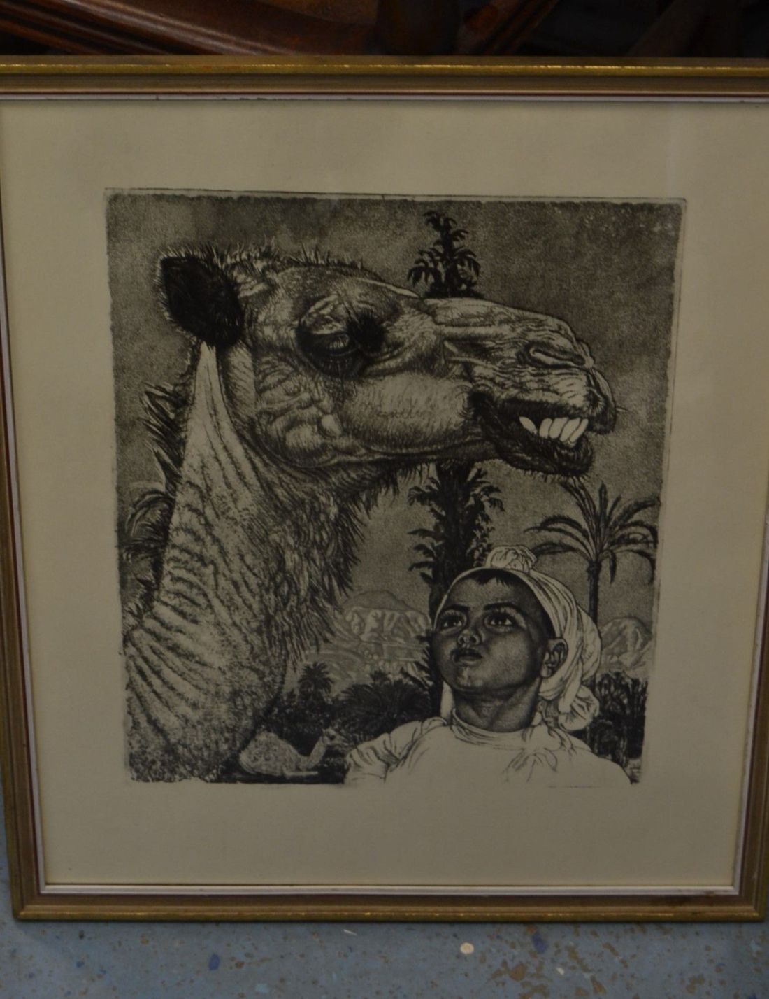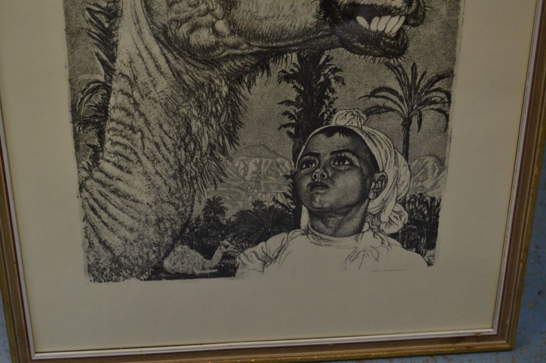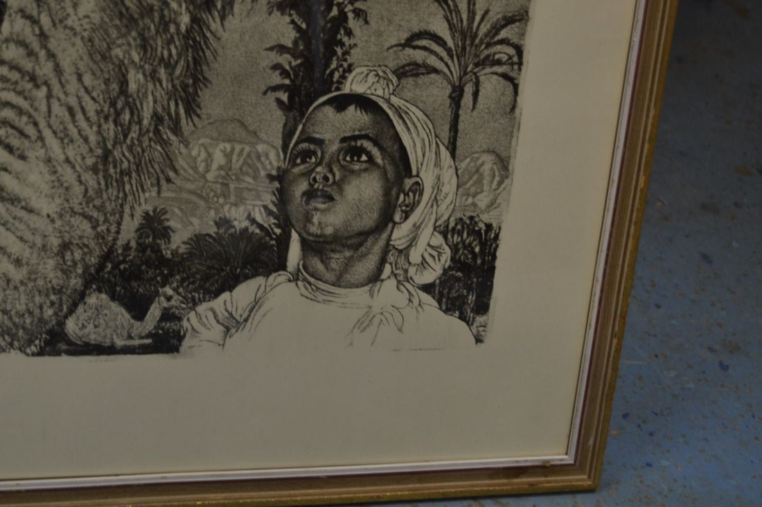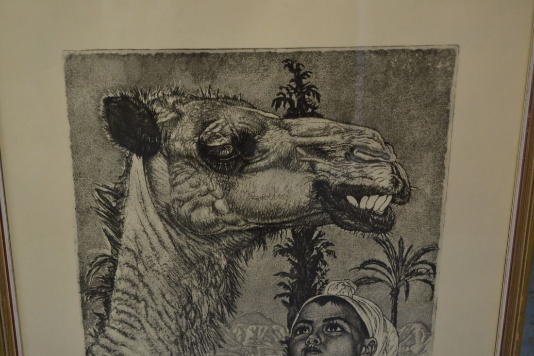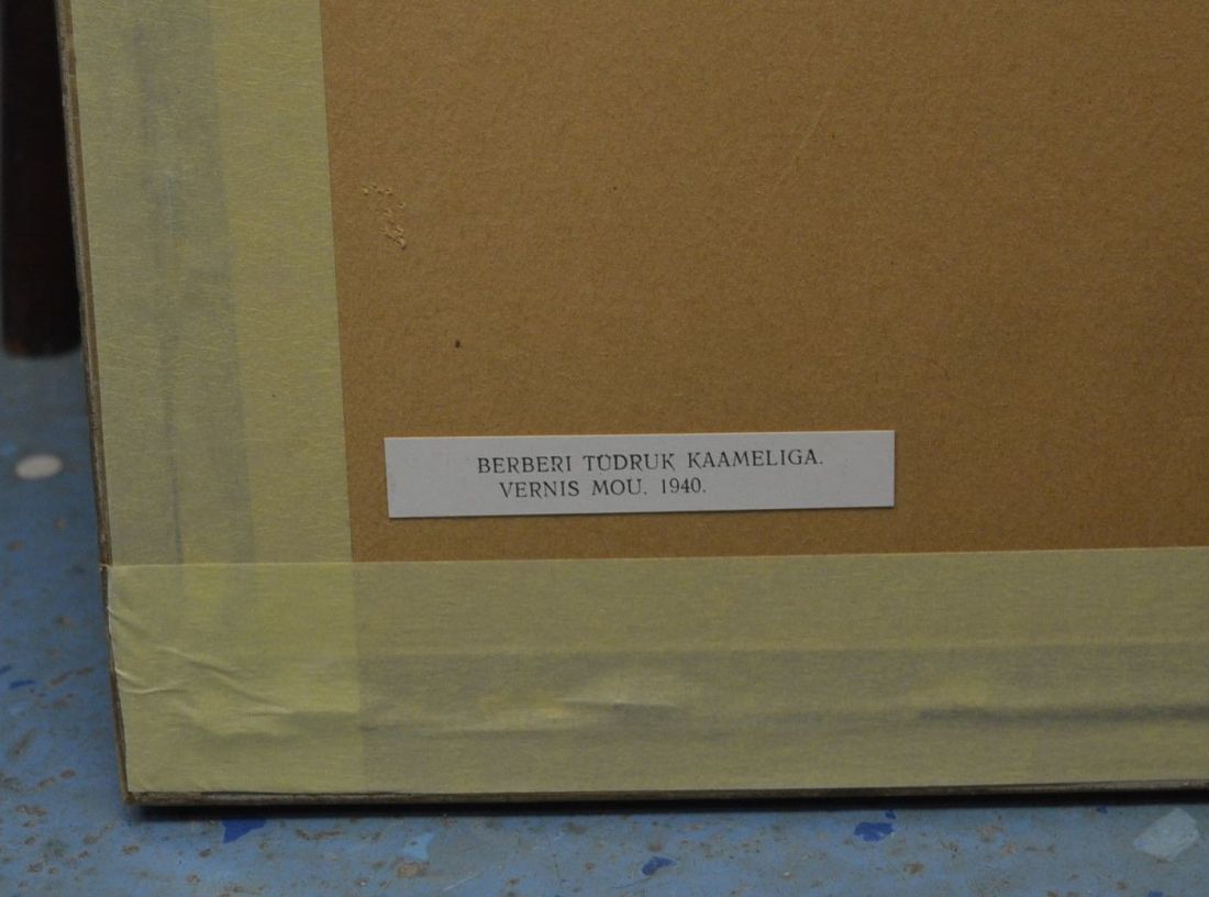 Mõõdud raamiga  475x 395mm. Raamitud, klaasitud,   1958.a. trükirepro mapist.  Berberi tüdruk kaameliga  VERNIS MOU 1940. Esineb kriime, täkkeid, kasutustunnuseid. Tarne pakiautomaati.