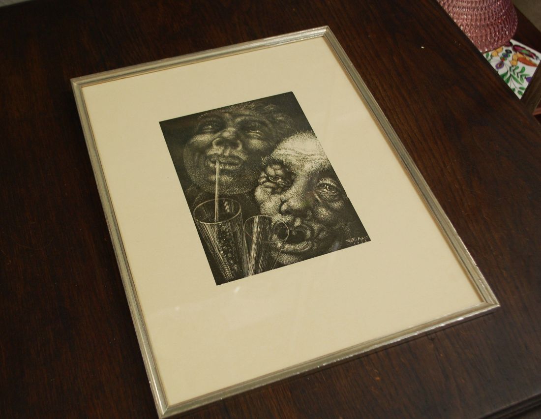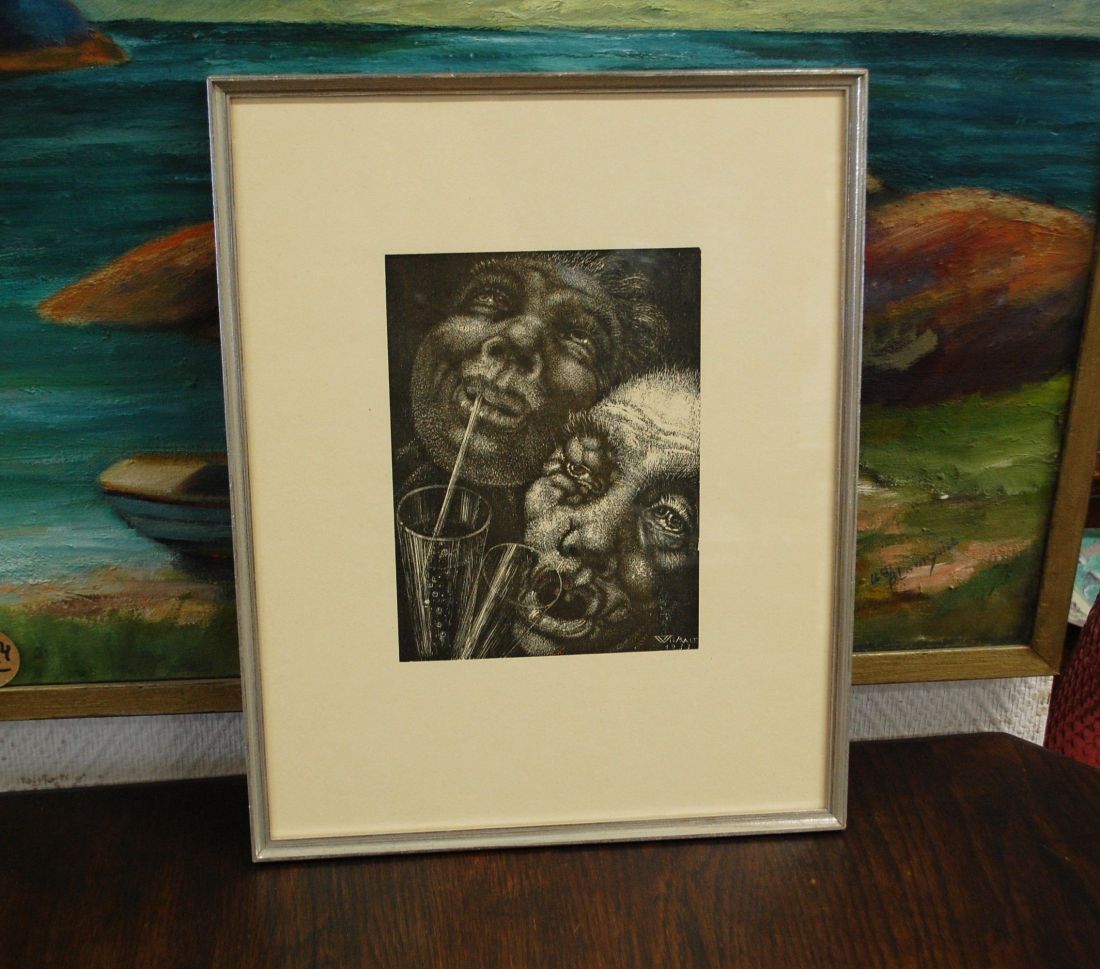 Mõõdud: 400 x 320mm. Raamitud, klaasitud. Meeleolukas signeeritud trükk. Võib olla väiksemaid kriime kasutusest. Tarne pakiautomaati