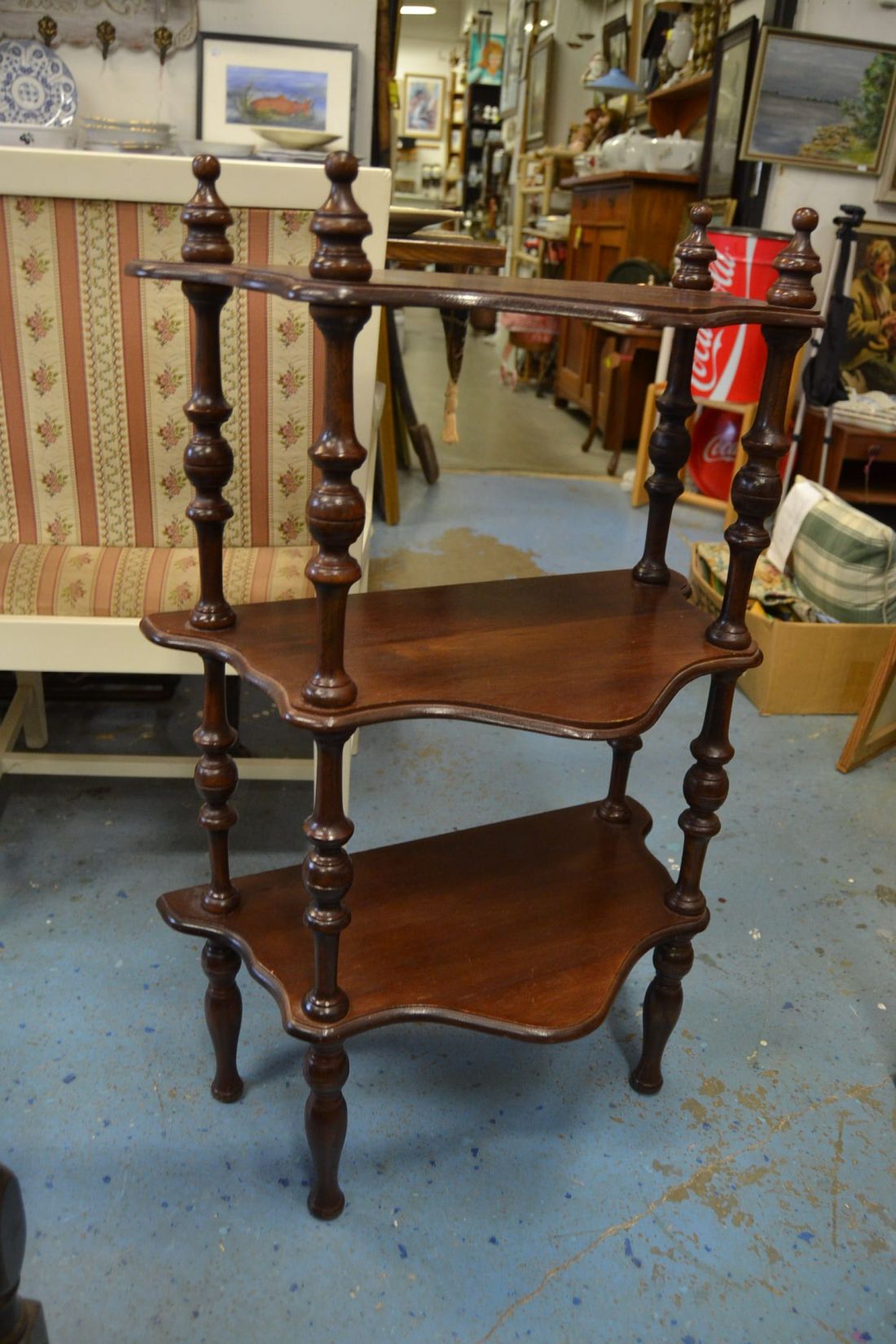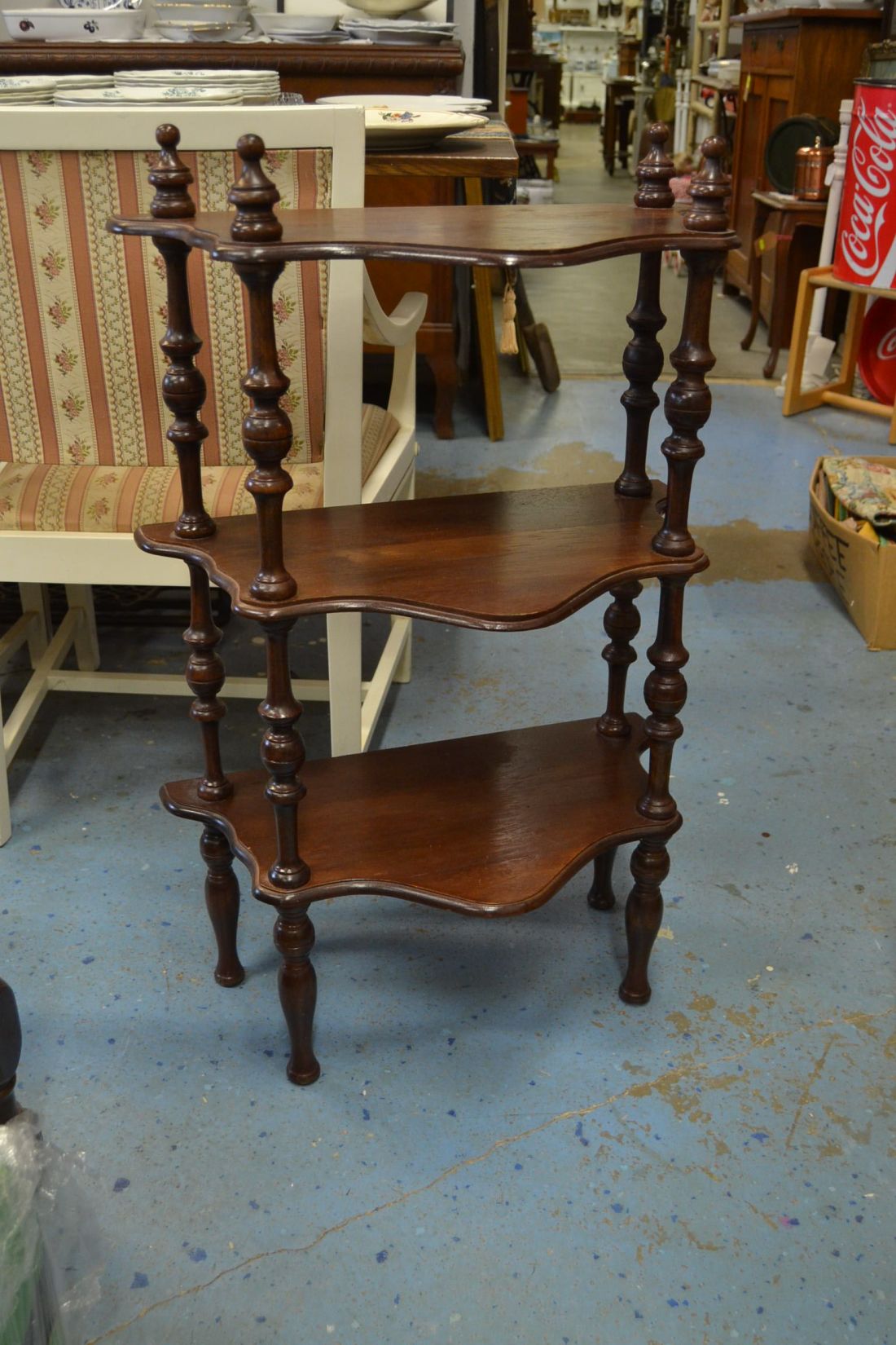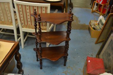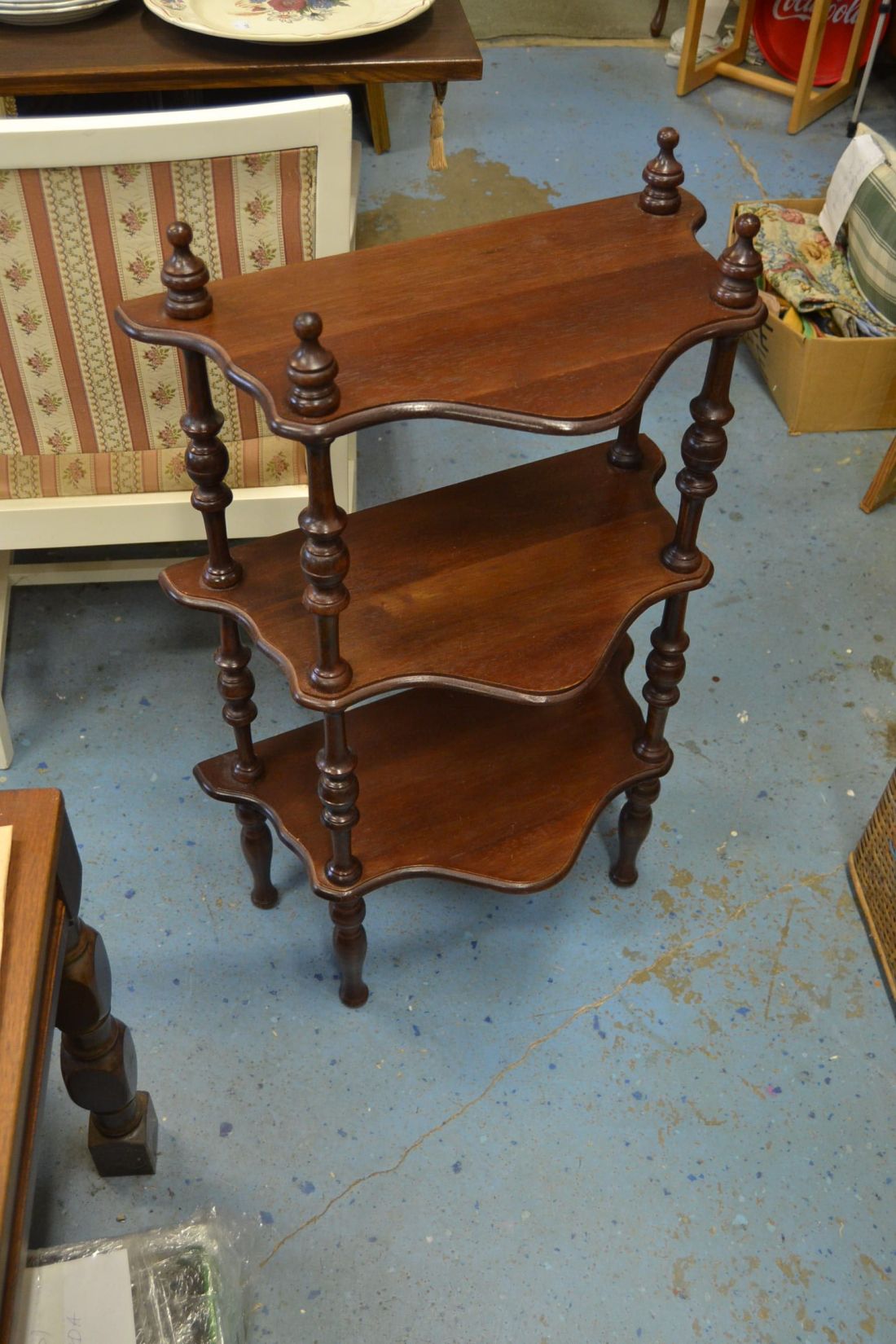 Mõõdud 530x295, kõrgus 840 mm. Vana kolme tasapinnaga puidust riiul. Mõned kriimud, täkked, kasutustunnused, toonierinevused.