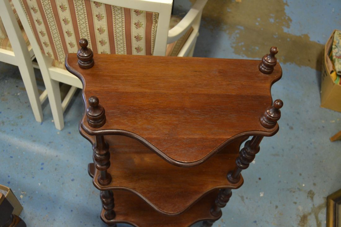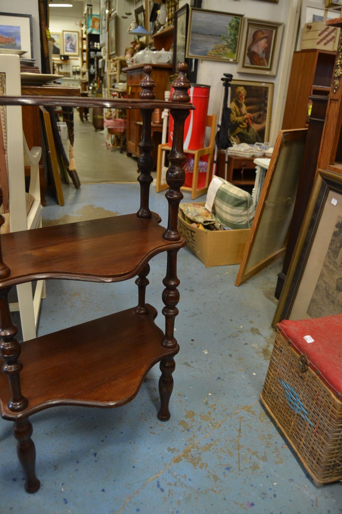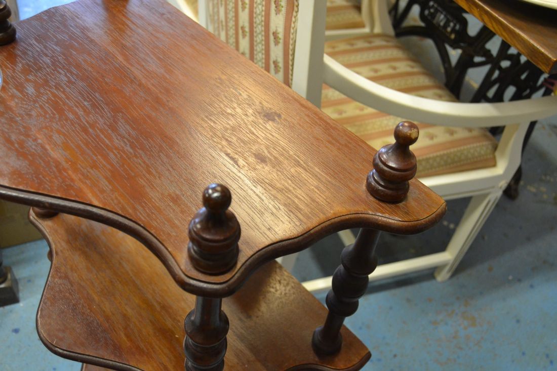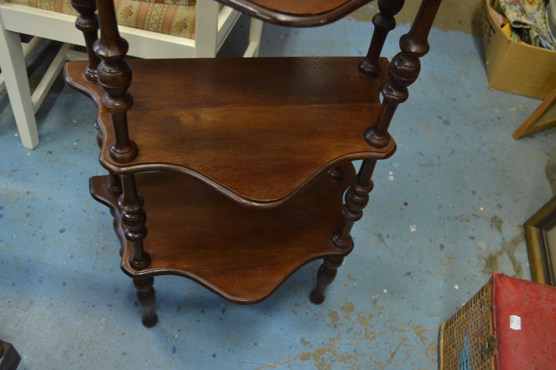 Mõõdud 530x295, kõrgus 840 mm. Vana kolme tasapinnaga puidust riiul. Mõned kriimud, täkked, kasutustunnused, toonierinevused.
