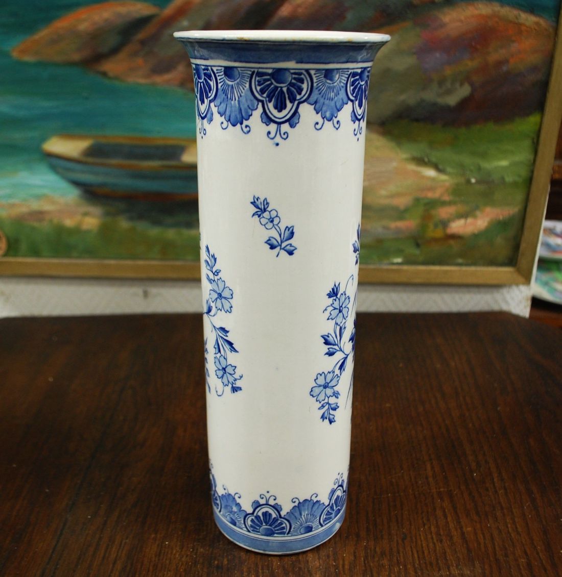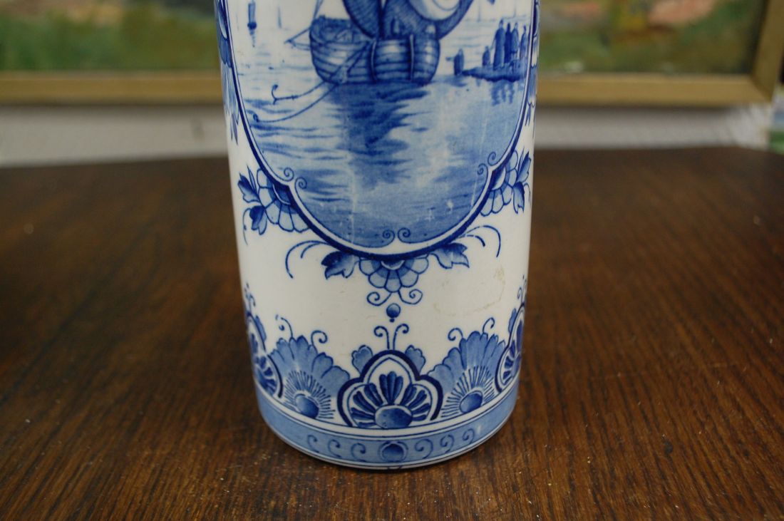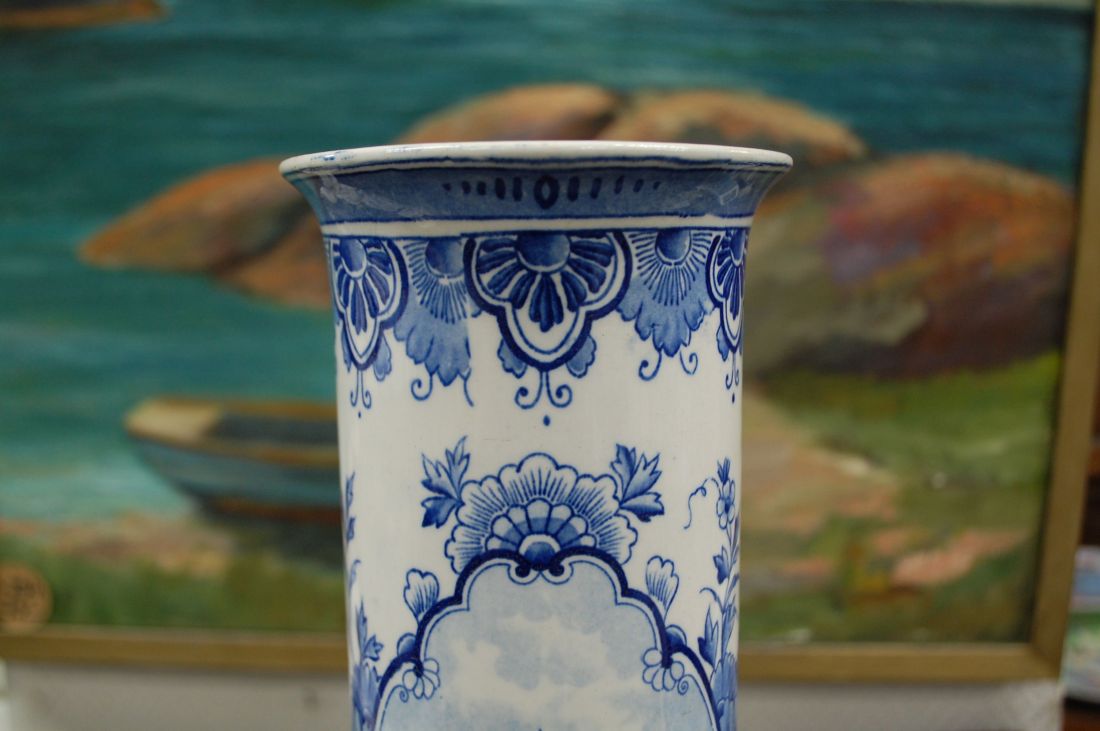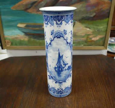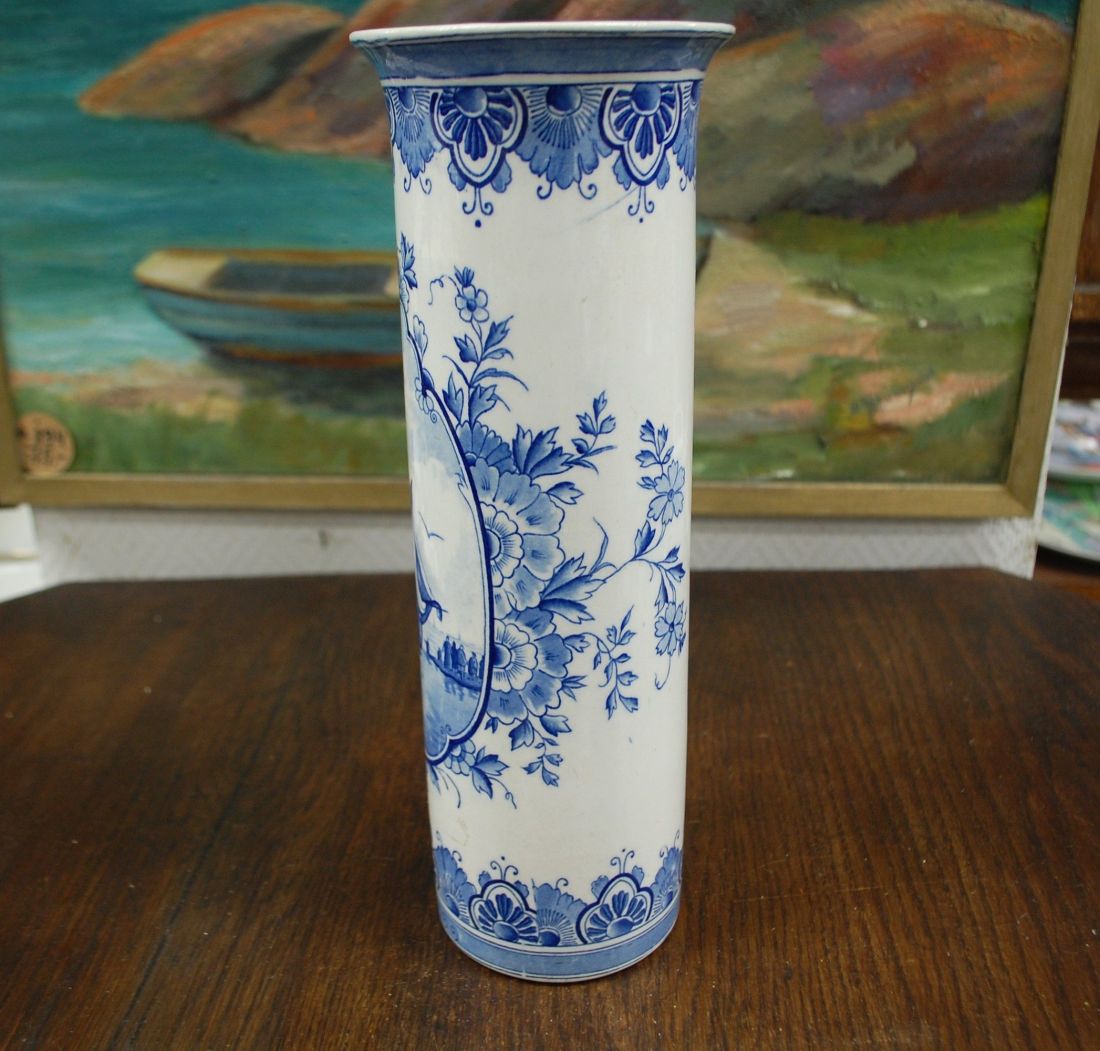 Läbimõõt 110mm, kõrgus 305mm. Sinise dekooriga kena sirge vaas pikematele lilledele. Esineb väiksemaid kasutustunnuseid (vaasi põhja all). Tarne pakiautomaati