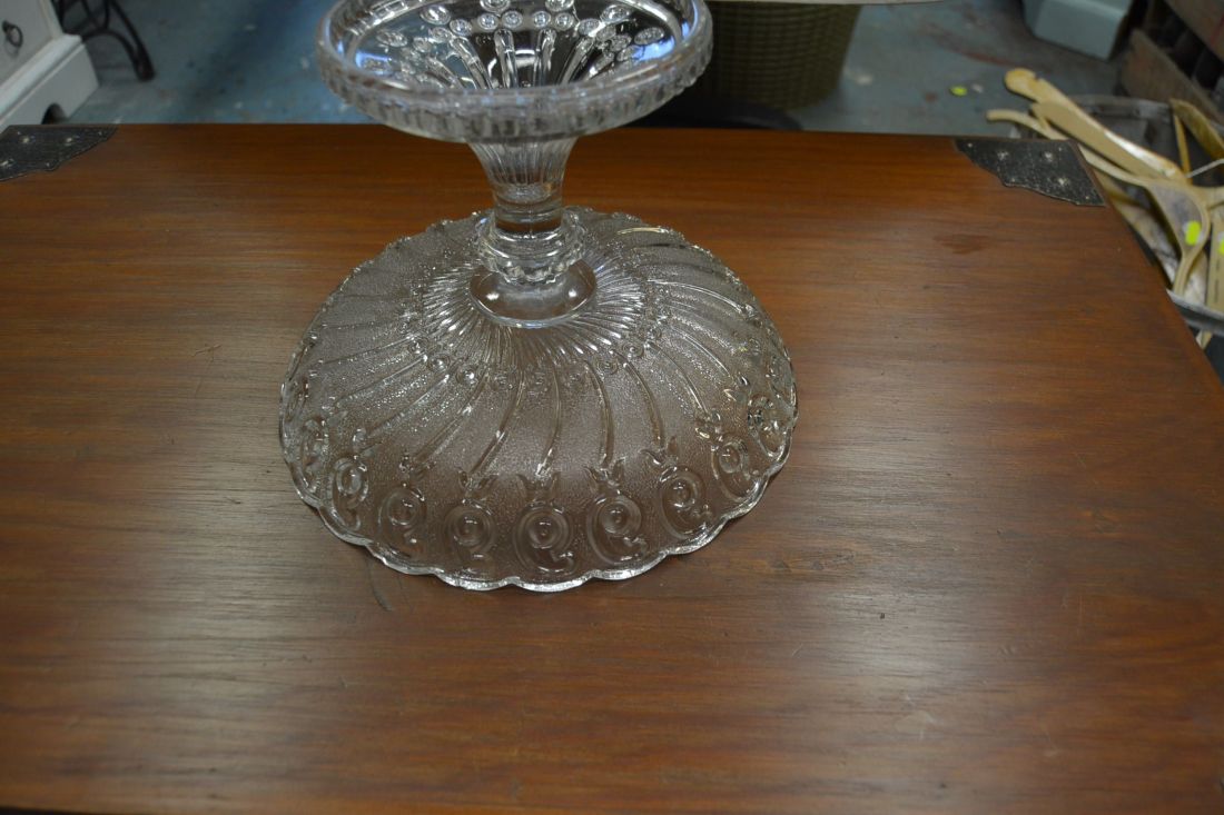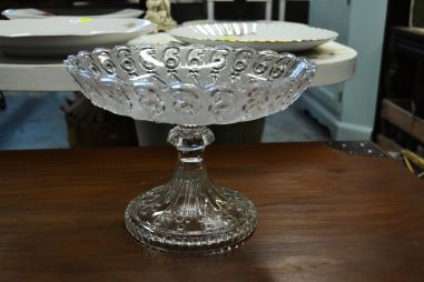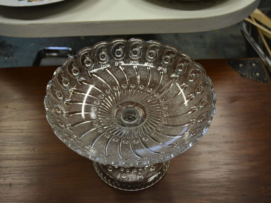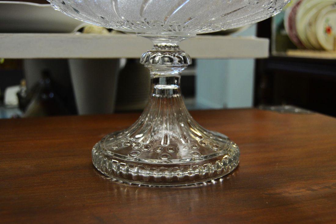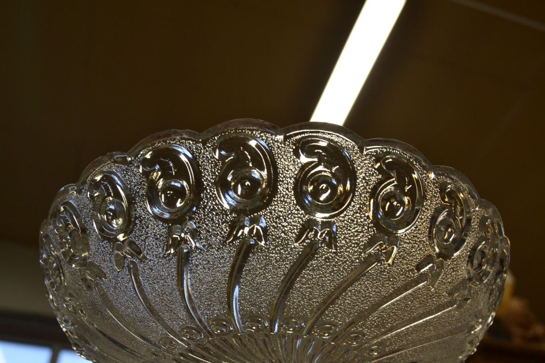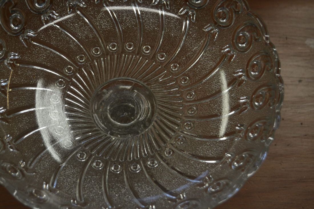 Läbimõõt 255, kõrgus 190 mm. Ilusa mustriga raske, kõrgel jalal klaaskauss. Mõned kriimud, kasutustunnused, näha mõnda valuviga, mulli. Tarne pakiautomaati
