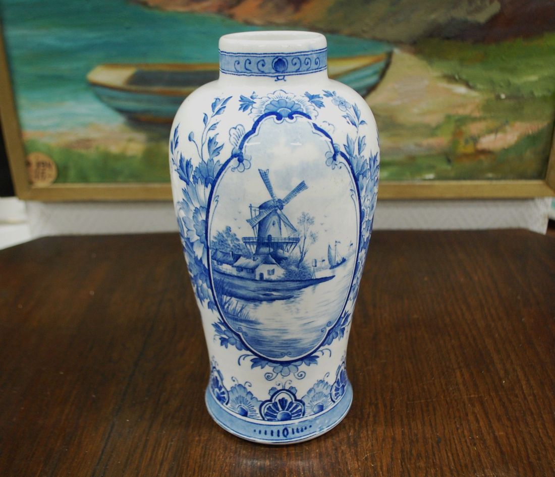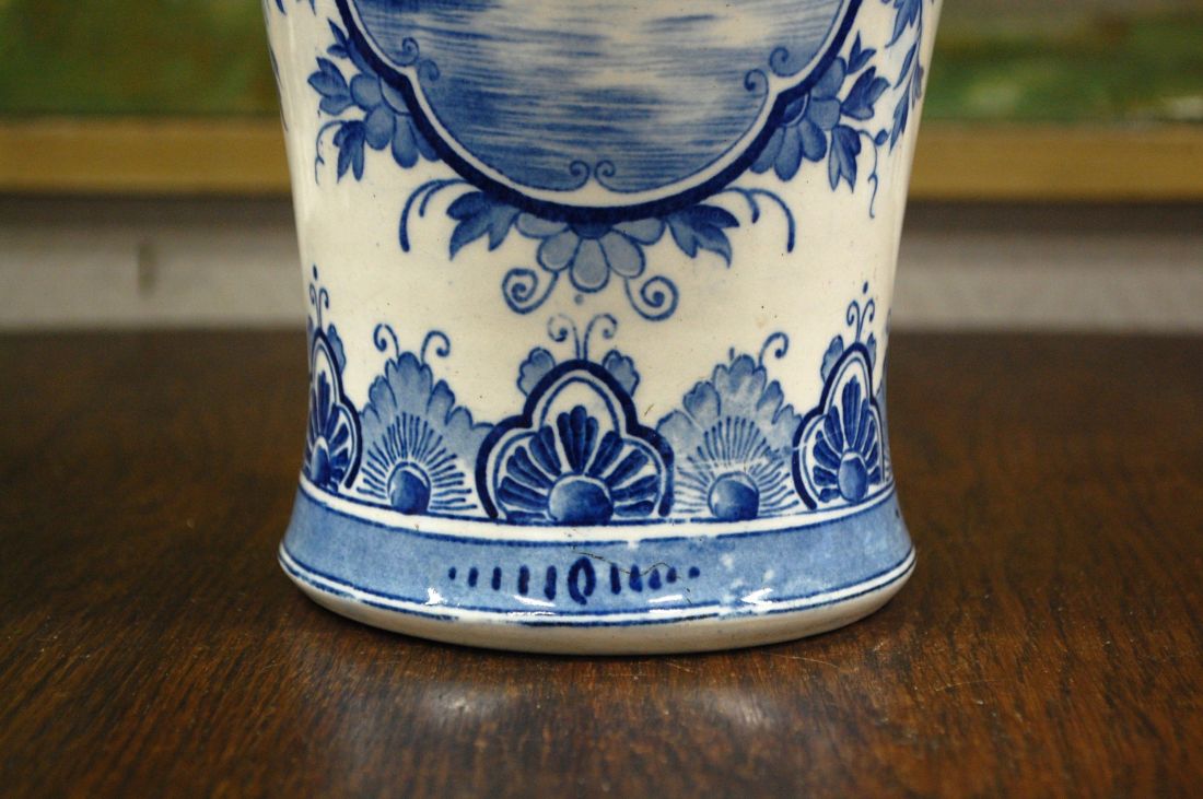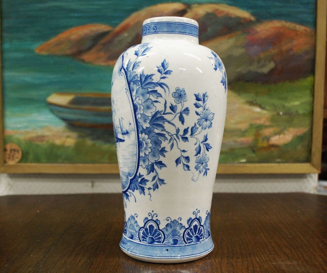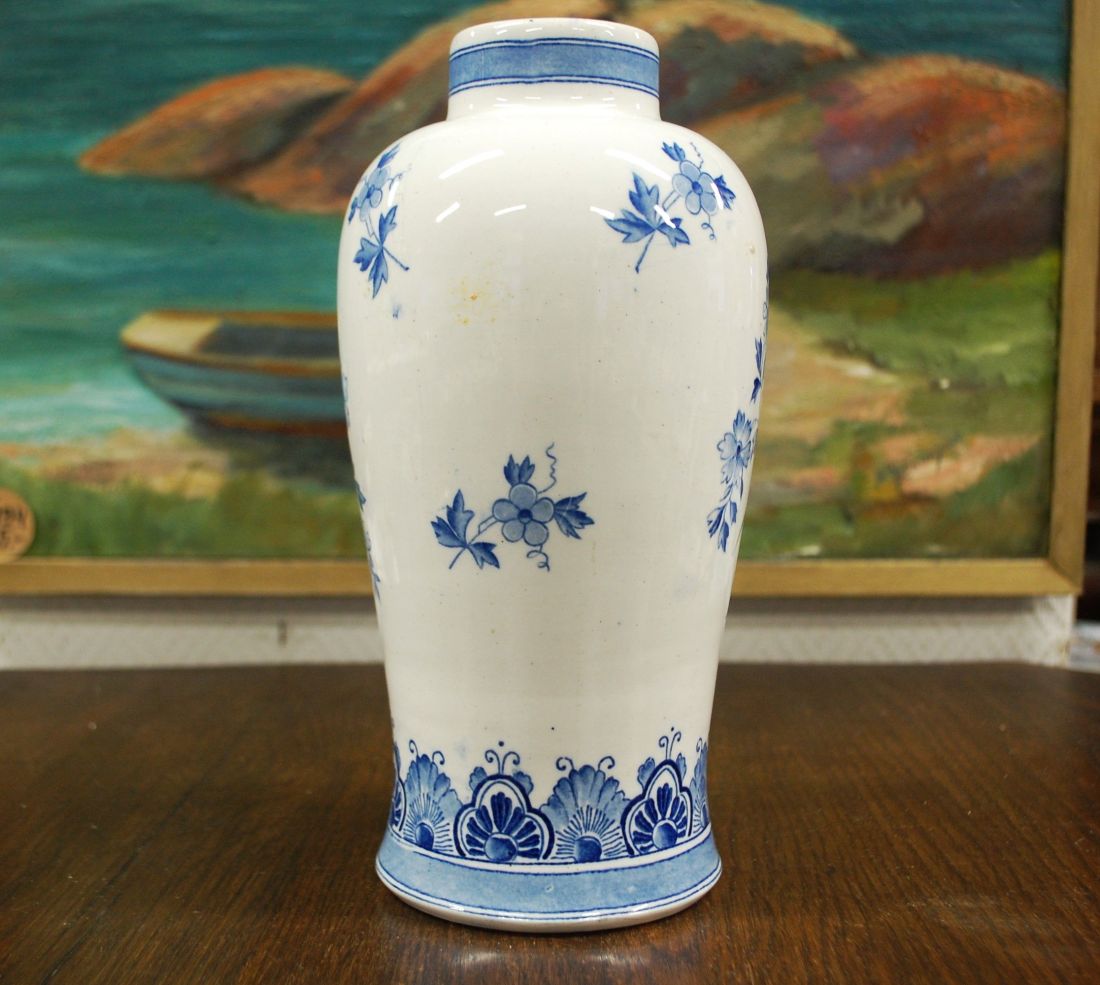 Mõõdud: 240 x 180mm, kõrgus 275mm. Kreemikal põhjal sinine dekoor. Esineb väiksemaid kriime ja krakleed kasutusest. Belgia. Bruno. Tarne pakiautomaati
