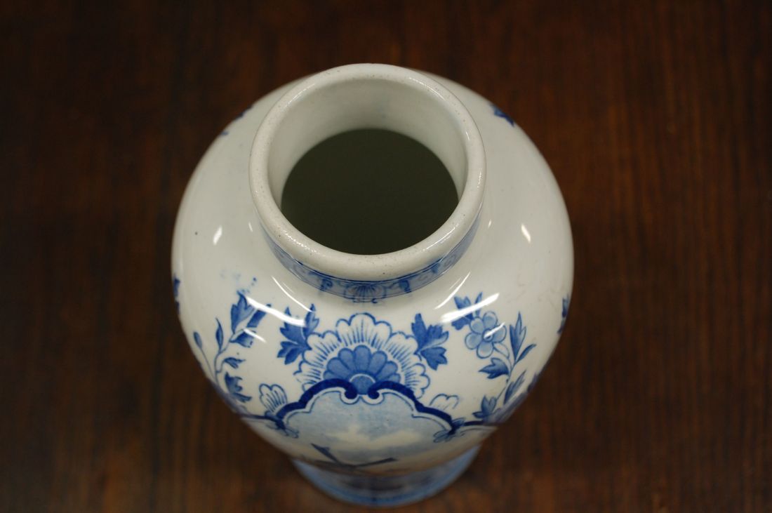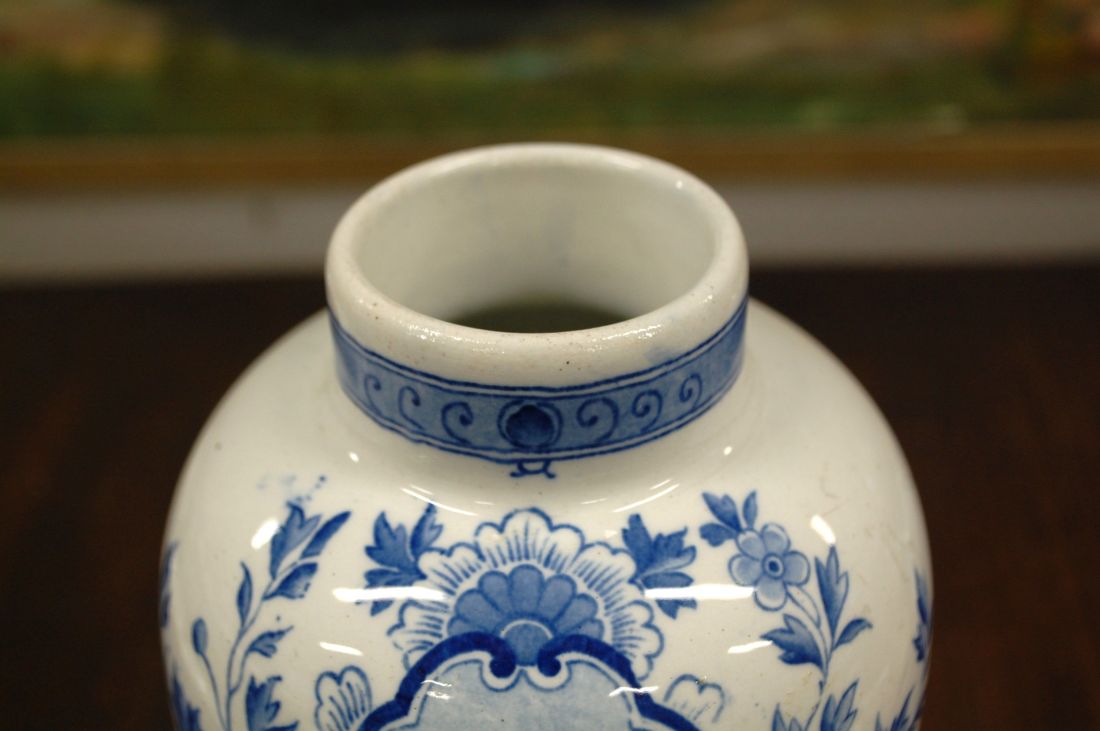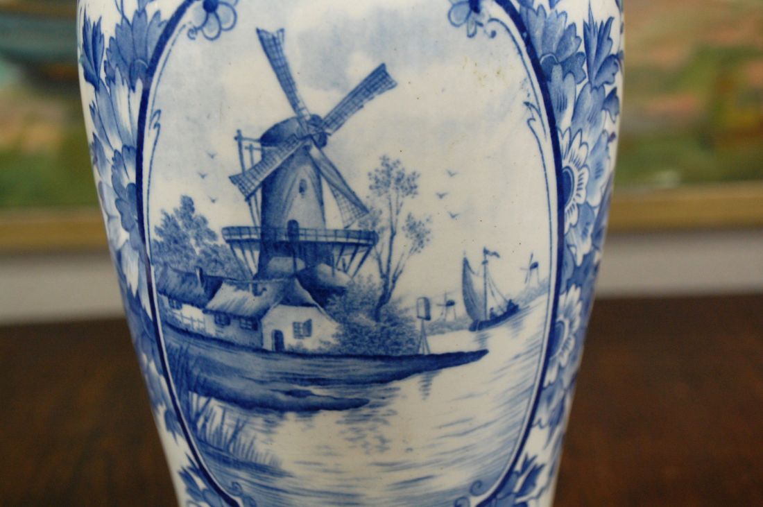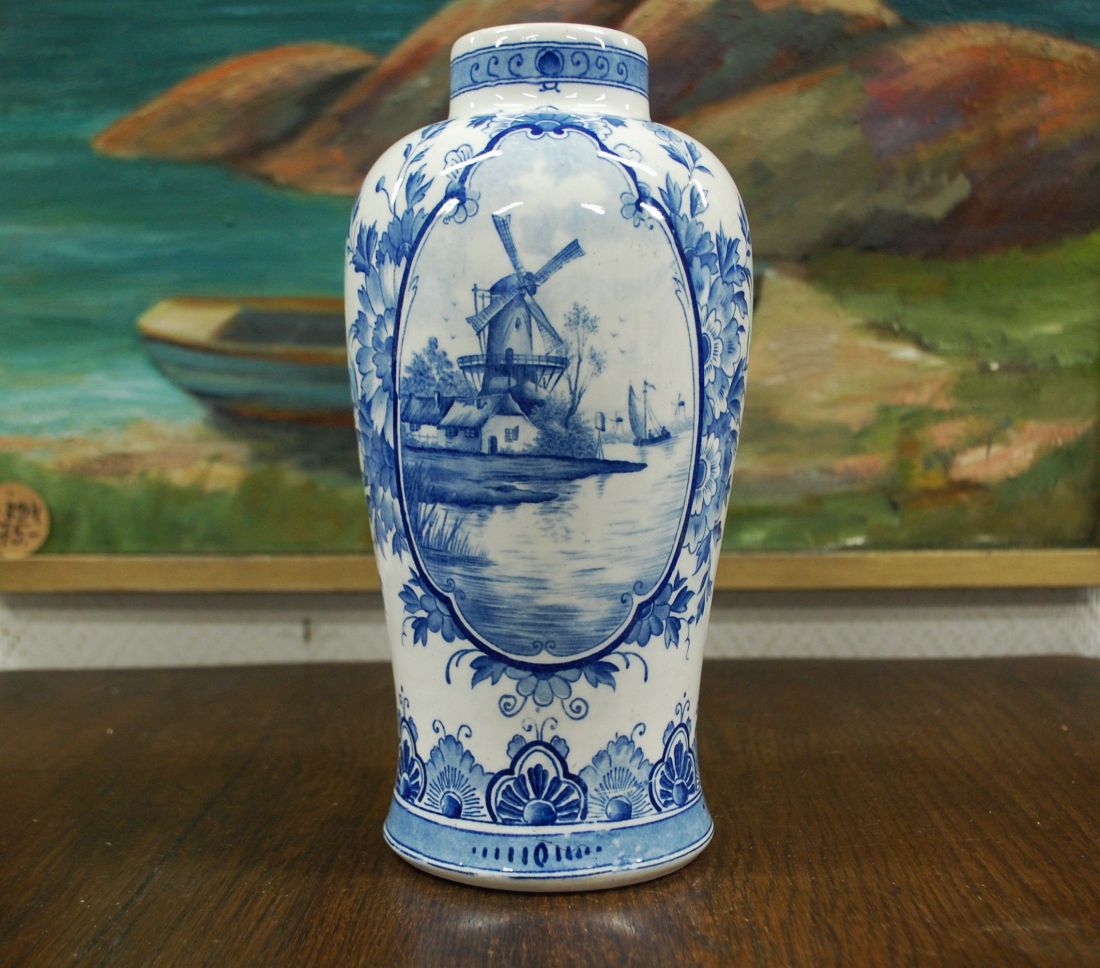 Mõõdud: 240 x 180mm, kõrgus 275mm. Kreemikal põhjal sinine dekoor. Esineb väiksemaid kriime ja krakleed kasutusest. Belgia. Bruno. Tarne pakiautomaati