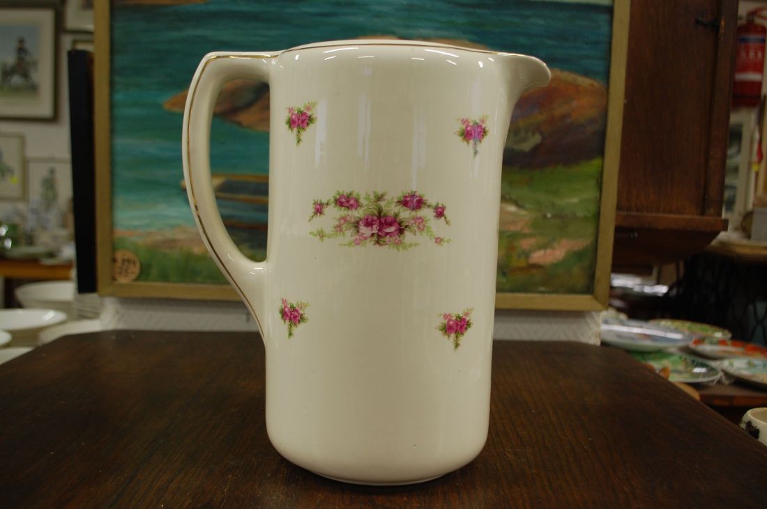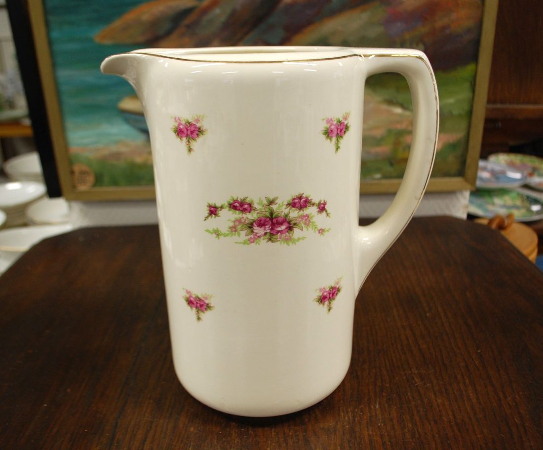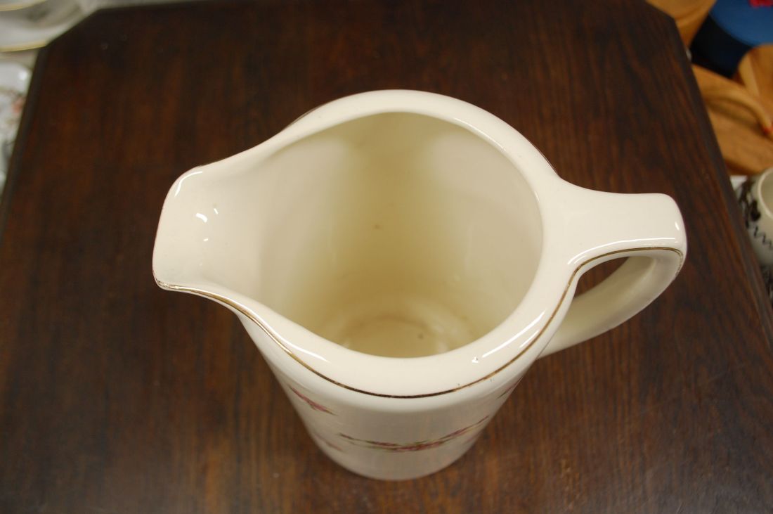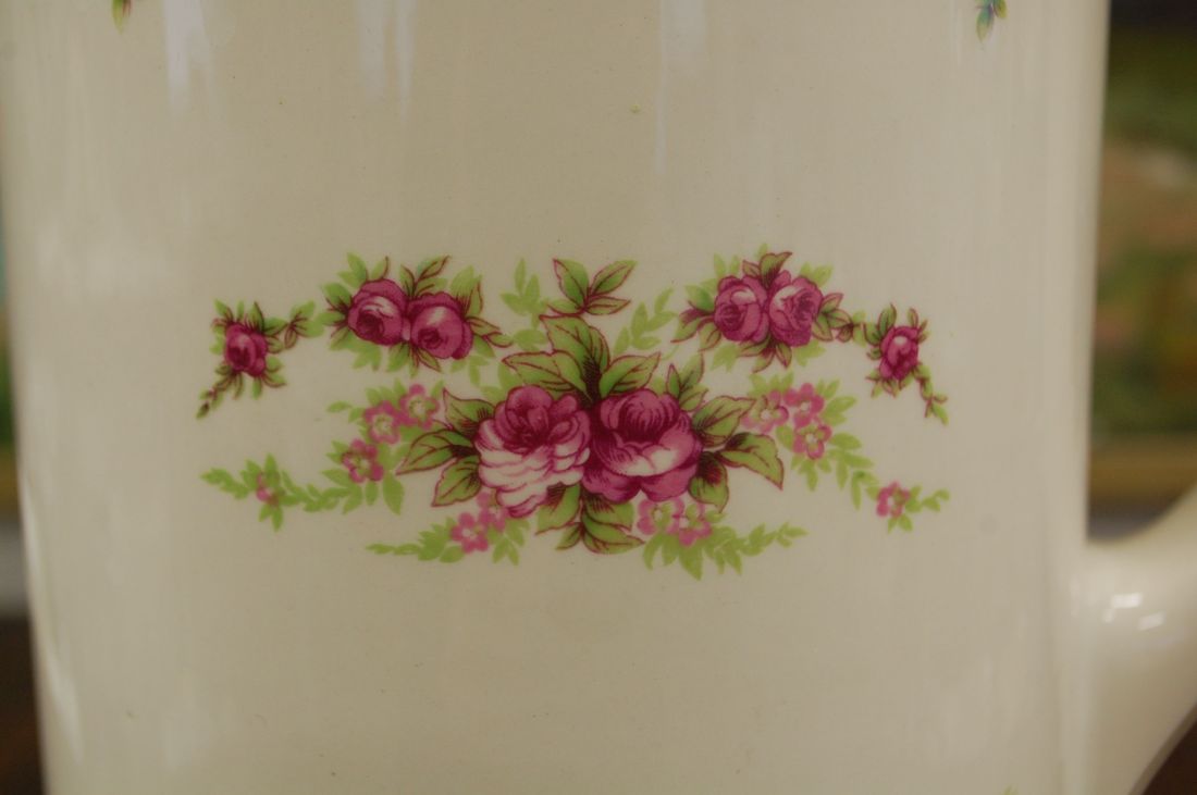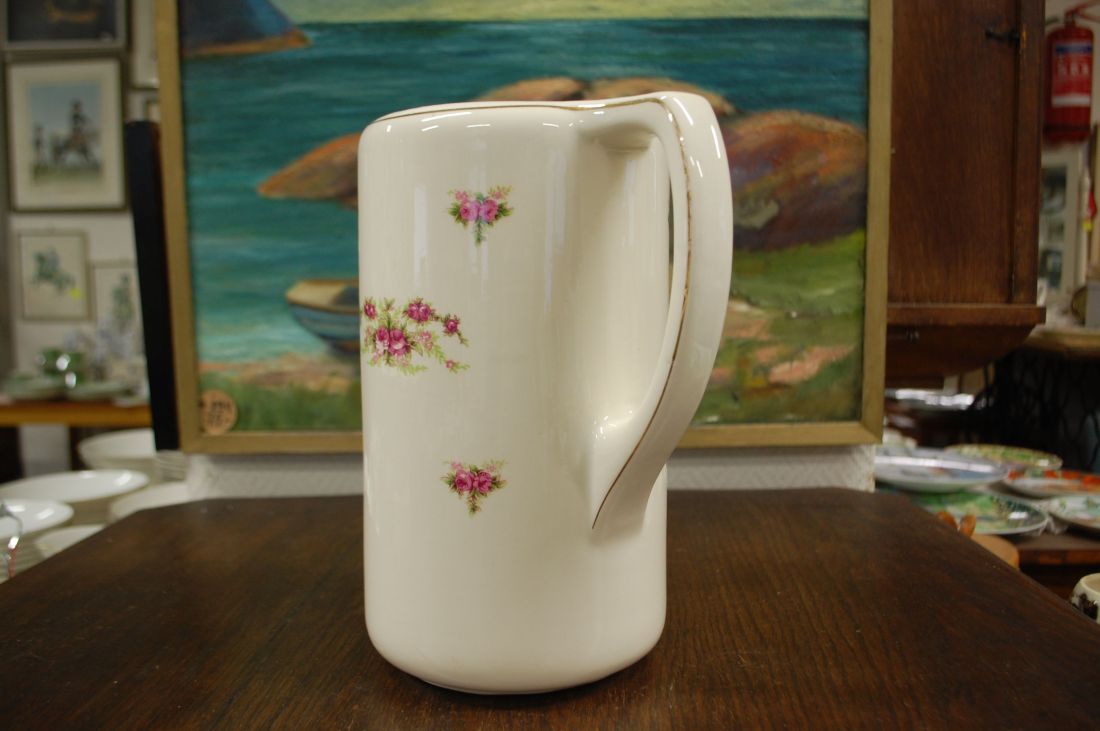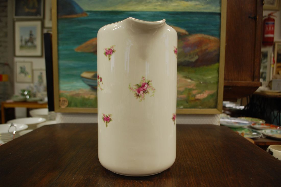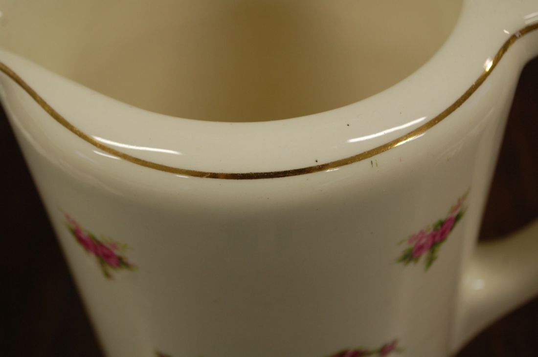 Mõõdud: 285 x 190mm, kõrgus 55mm. Pitsiline serv, kaunis roosades toonides dekoor, kullatis servas. Esineb väiksemaid kriime ja kullatise kulumist kasutusest.