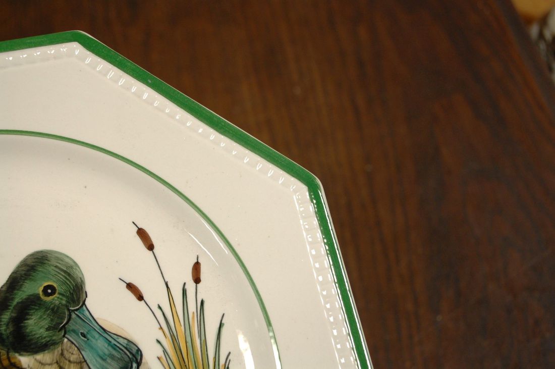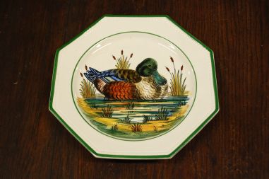 Mõõdud: taldriku läbimõõt 135mm. Tassi läbimõõt 80mm, kõrgus 70mm. Sini-valged õlelillemustriga nõud. Ilusas korras, võib olla väiksemaid kriime kasutusest. Tarne pakiautomaati