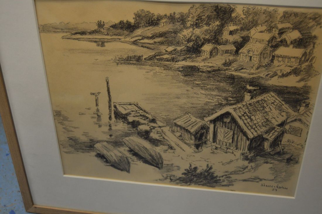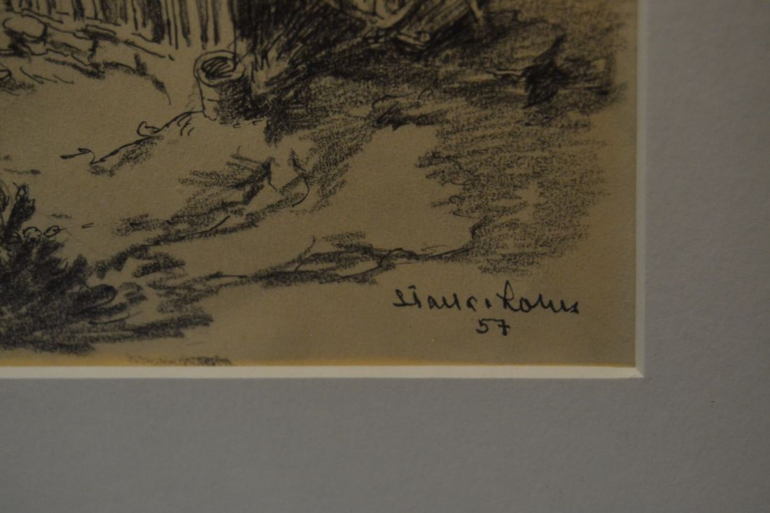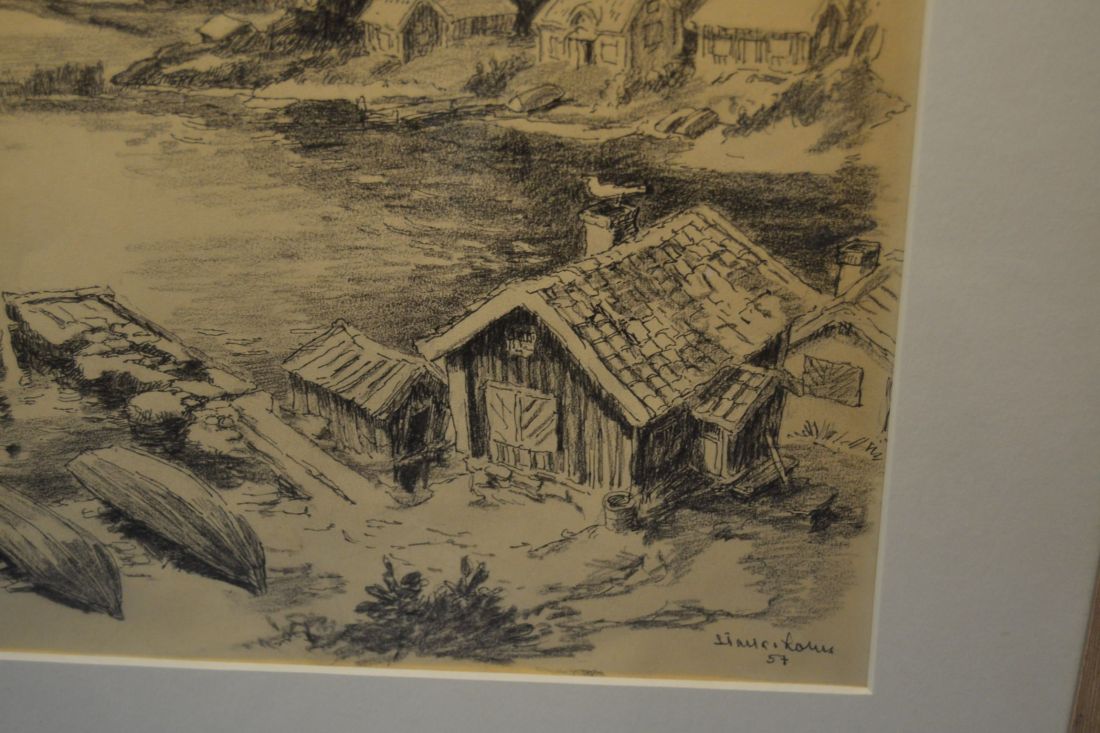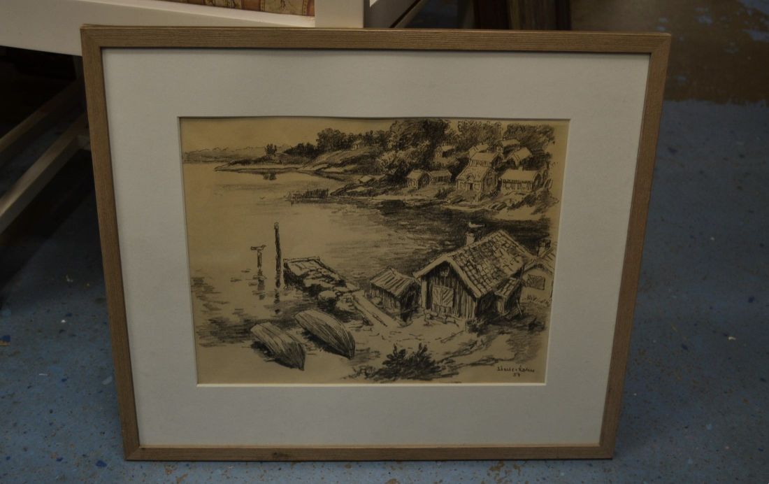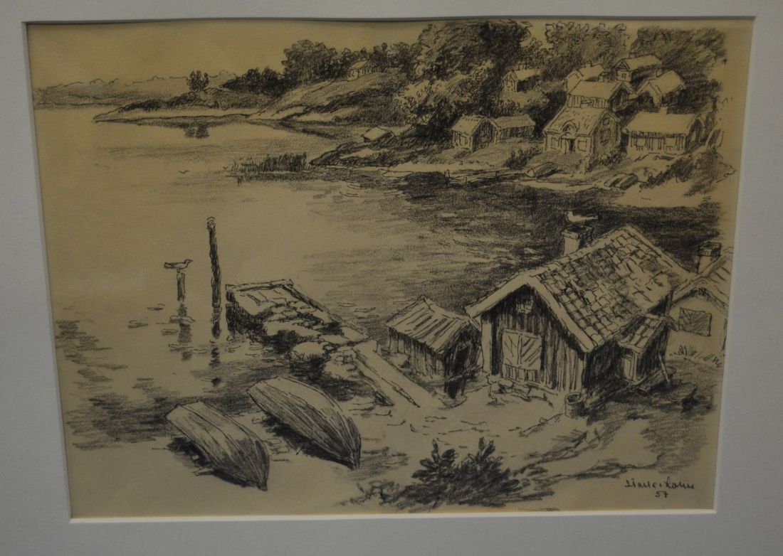 Mõõdud  475 x 410mm. Raamitud klaasitud ja signeeritud töö aastast 1957. Tehnikat läbi klaasi raske määrata. Mõned kriimud, täkked, toonierinevused. Kasutustunnused. Tarne pakiautomaati.