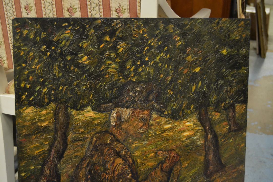 Mõõdud: kõrgus 350mm, jala kõrgus 230mm. Kullatooni metalldetaiid, tumedam roheline klaaskuppel. E 14 pirnipesa. Proovides läks põlema. Elektriosa soovitav lasta enne kasutusele võttu elektrikul üle vaadata. Esineb kriime, kuliumist,metallosall mitmed praod, pildid. Tarne pakiautomaati