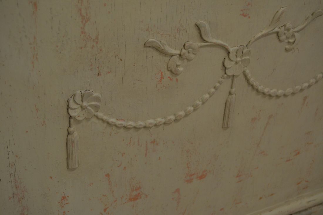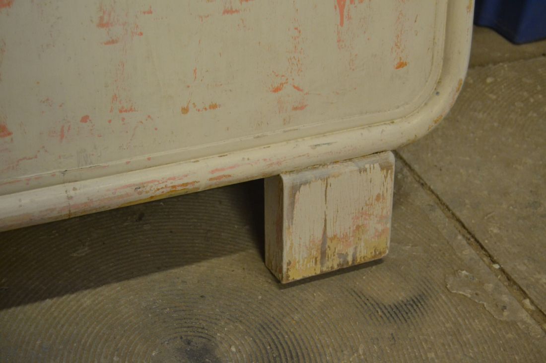 Mõõdud 800x400, kõrgus 470. Kapil 2+1 sahtel, valgeks värvitud, värv vanutatud, mõned kriimud, täkked, toonierinevused, kasutustunnused.