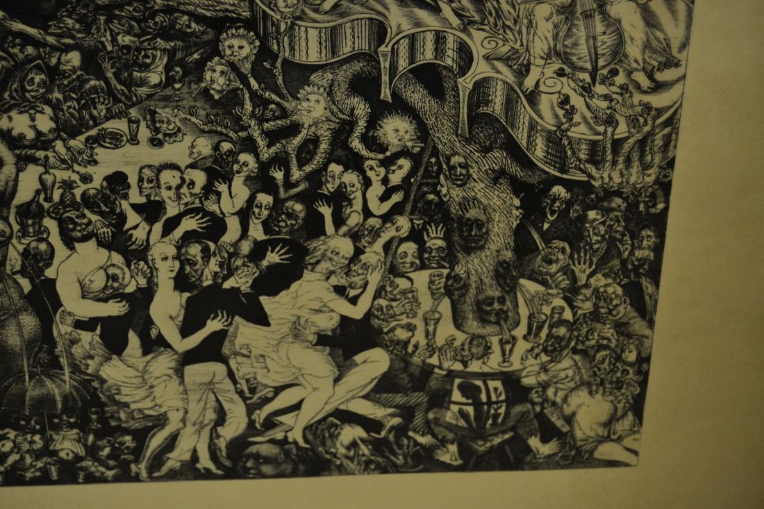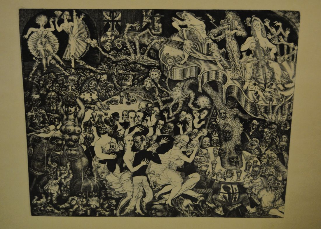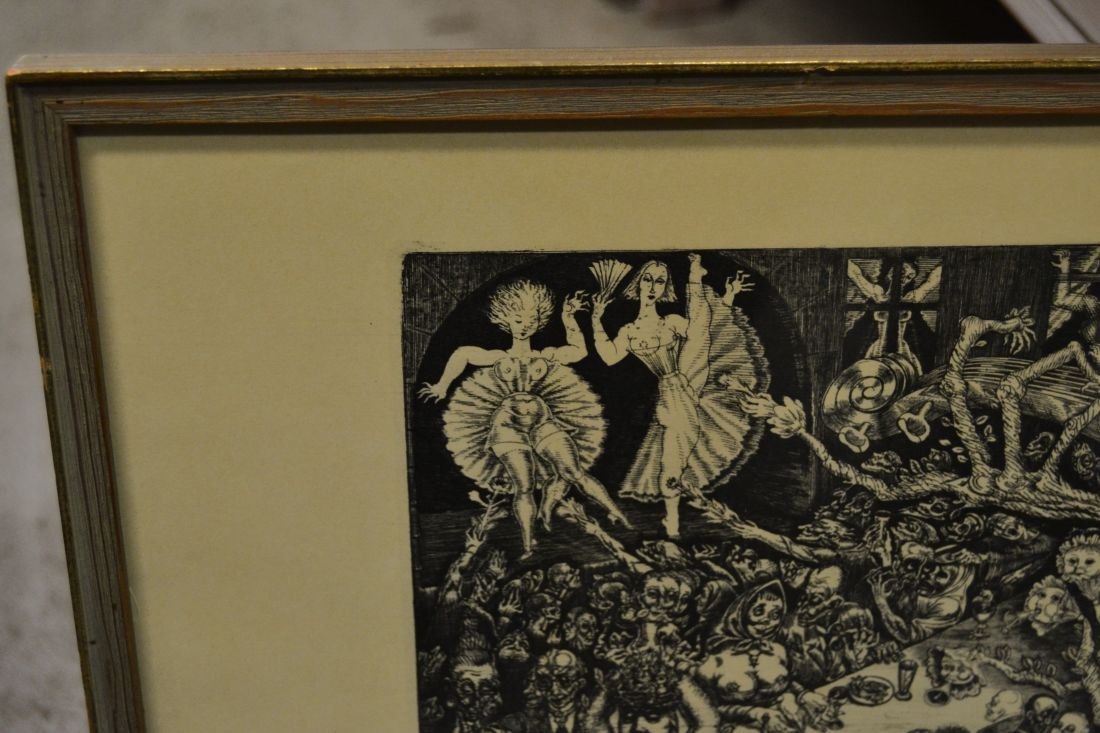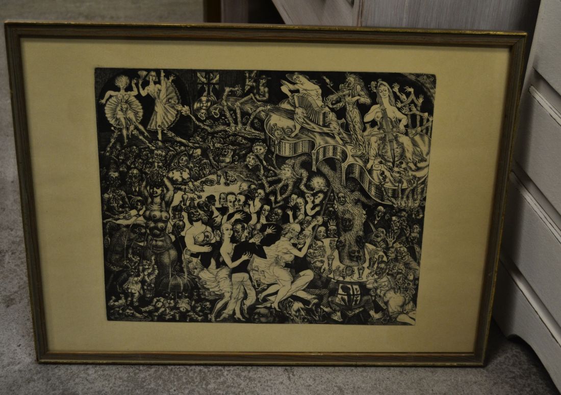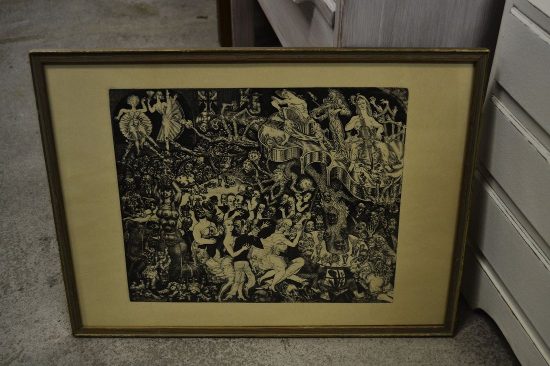 Mõõdud raamiga 405 x 335mm. Raamitud, klaasitud. 1958.a. trükirepro mapist. Põrgu. Vasegravüür Ofort. 1930. Esineb väiksemaid kriime, täkkeid, kasutustunnuseid. Tarne pakiautomaati.