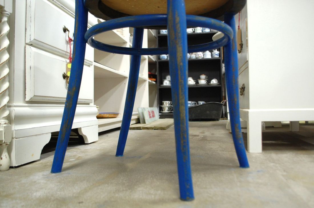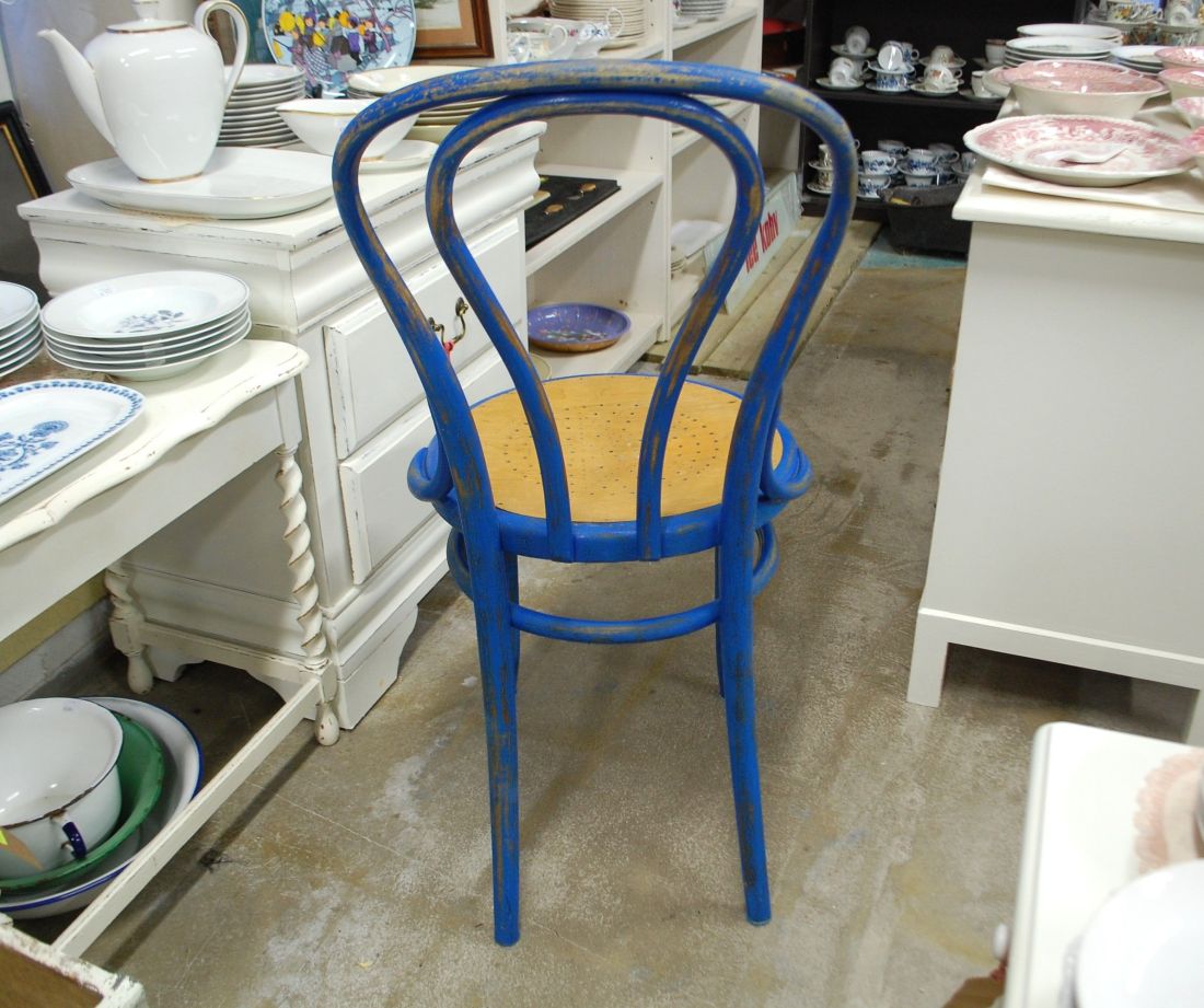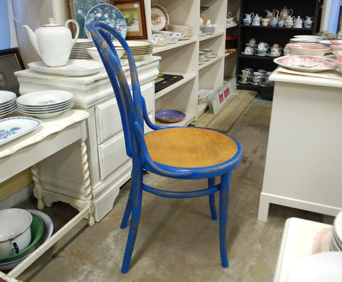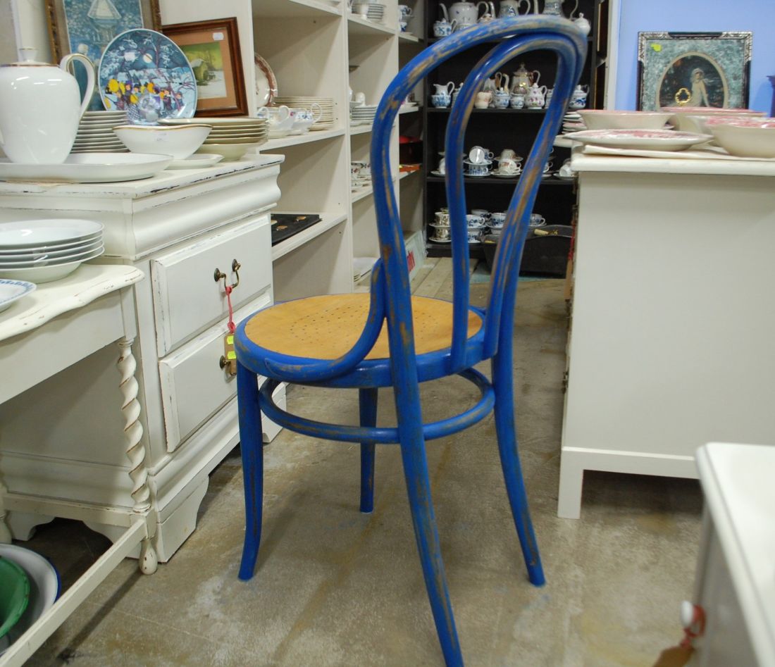 Laius 425, kõrgus 920, istumisosa maast 475mm. Vana puitraamil vineerpõhjaga klassikaline viinitool. Raam sinist värvi, värv vanutatud. Istme osa ilmselt hilisemast ajast, heledat tooni. Raamil märgistus Kohn Wien. Esineb kriime, täkkeid, kulumist, kuivamispragusid, ebatasasusi, toonierinevusi, kasutustunnuseid.