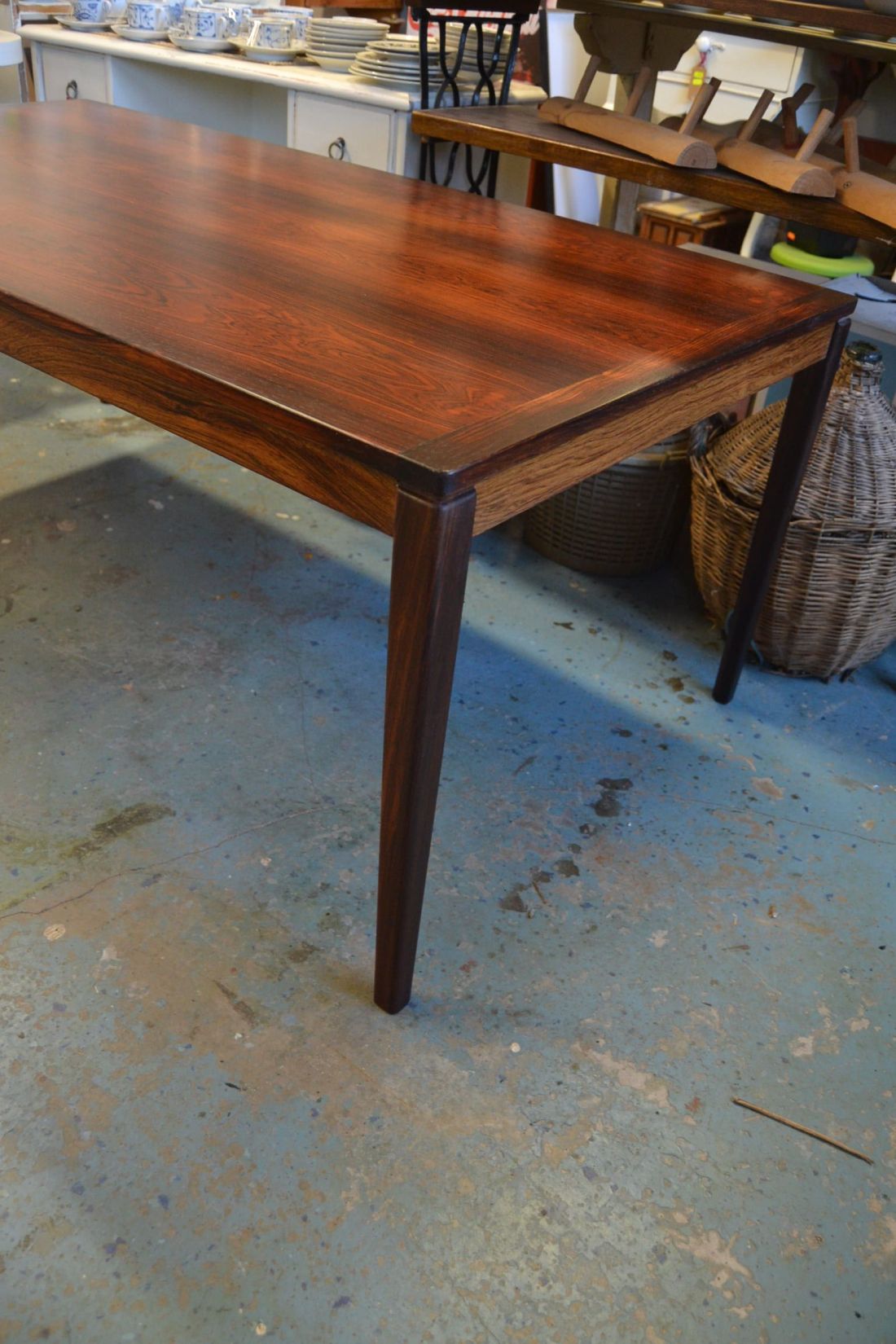 Mõõdud: 365 x 215mm, kõrgus 200mm. Kreemika põhja peal punane dekoor, kaanel kulbi ava. Toodeti 1900-1905, Prantsusmaal. Esineb väiksemaid kriime, kulumist kasutusest. Tarne pakiautomaati