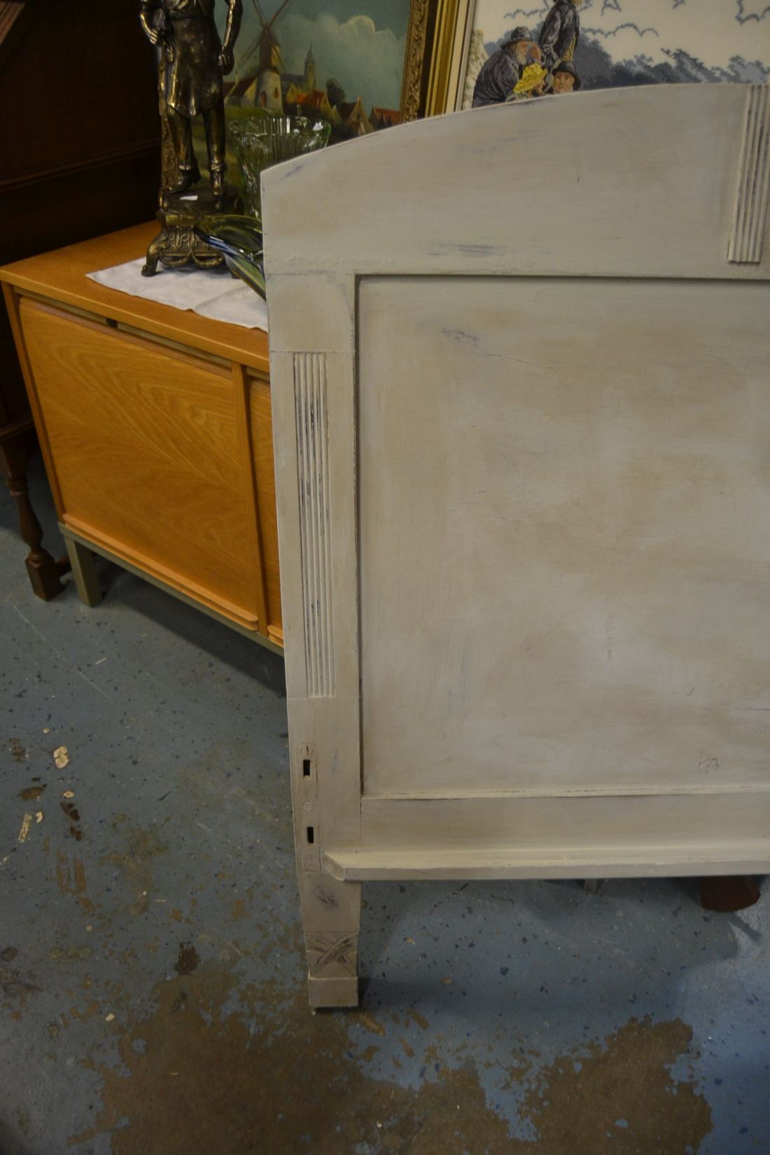 Mõõdud 810 x 50, kõrgus 1020 mm. Vana puidust raske voodiots. Hele mitmetooniline vanutatud viimistlus, esineb kriime, täkkeid, kasutustunnuseid, toonierinevusi, kuivamispragusid, mõni pisidetail võib puudu olla. Saab kasutada näiteks raamiga voodil voodi ja seina vahel. Kuna otsasid tuleb müüki mitu saab ka kokku kombineerida voodiotsteks või raamiks või muuks sisustuselemendiks. Ilusad puidulõiked