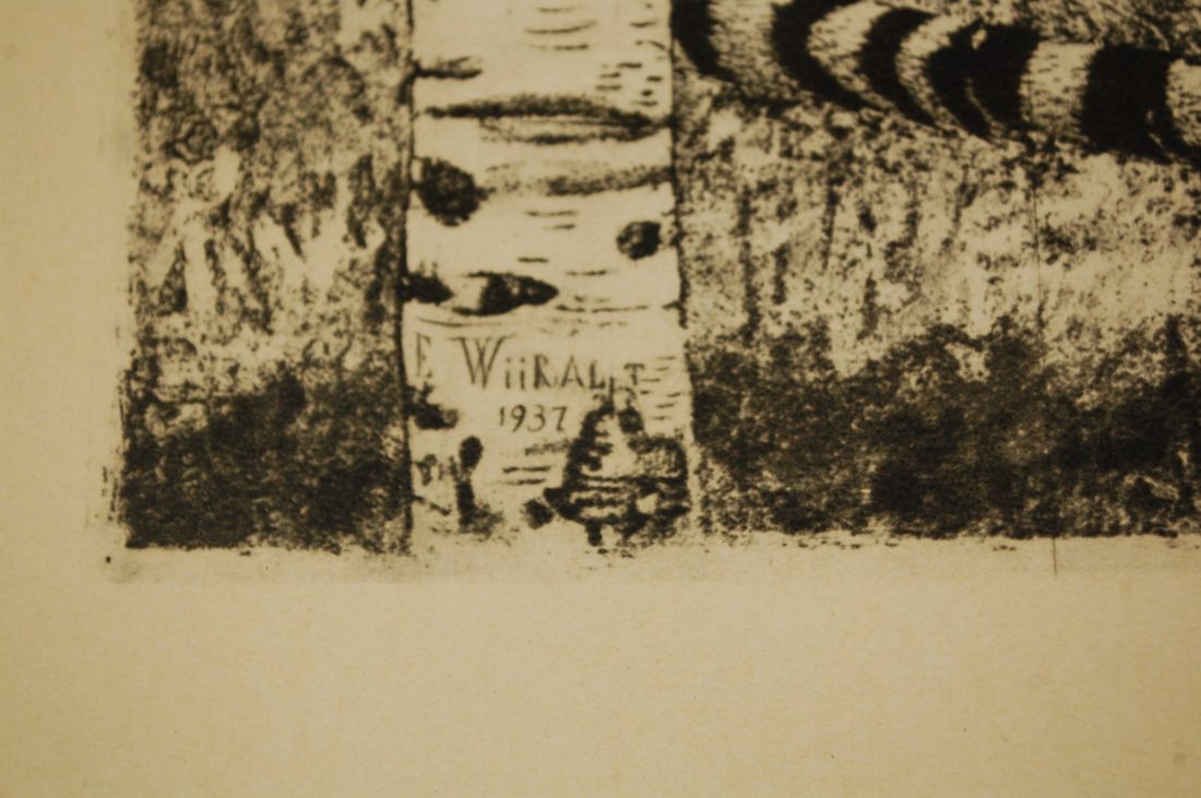 Mõõdud 530x425 mm. Kenade mahedate toonidega nummerdatud ja signeeritud suuremaformaadiline töö. Mõned kriimud, täkked, kasutustunnused. Tarne pakiautomaati