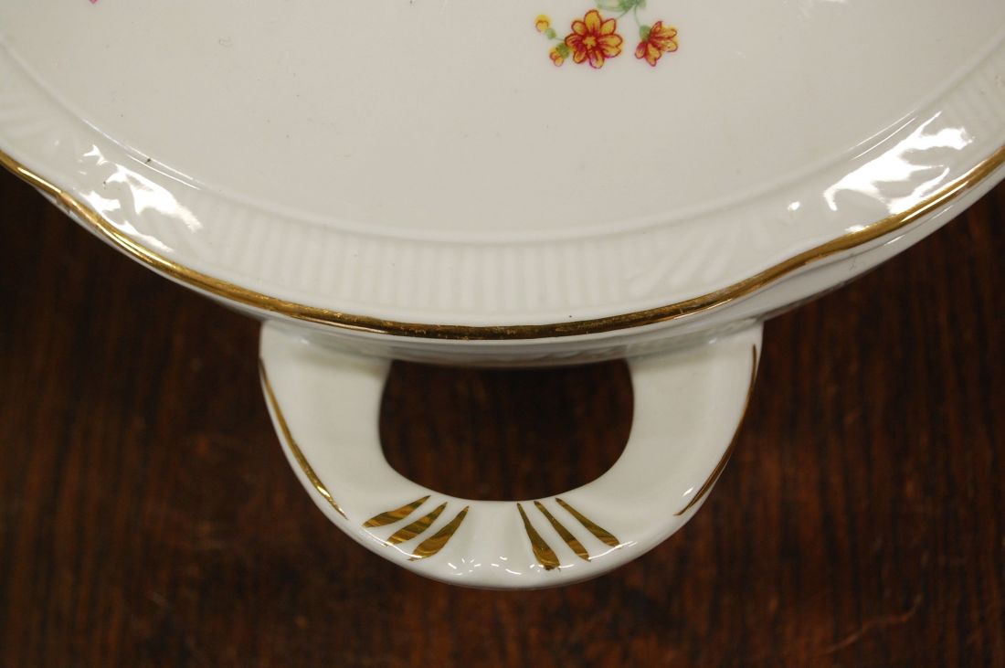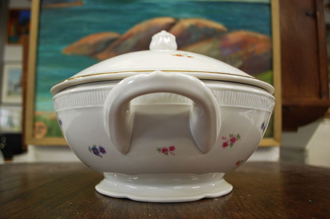 Läbimõõt 240mm, kõrgus 70mm. Valgel põhjal sinine dekoor. Fyrklövern, Rootsi. Esineb väiksemaid kriime kasutusest. Tarne pakiautomaati