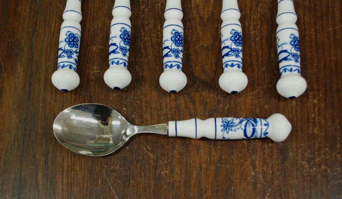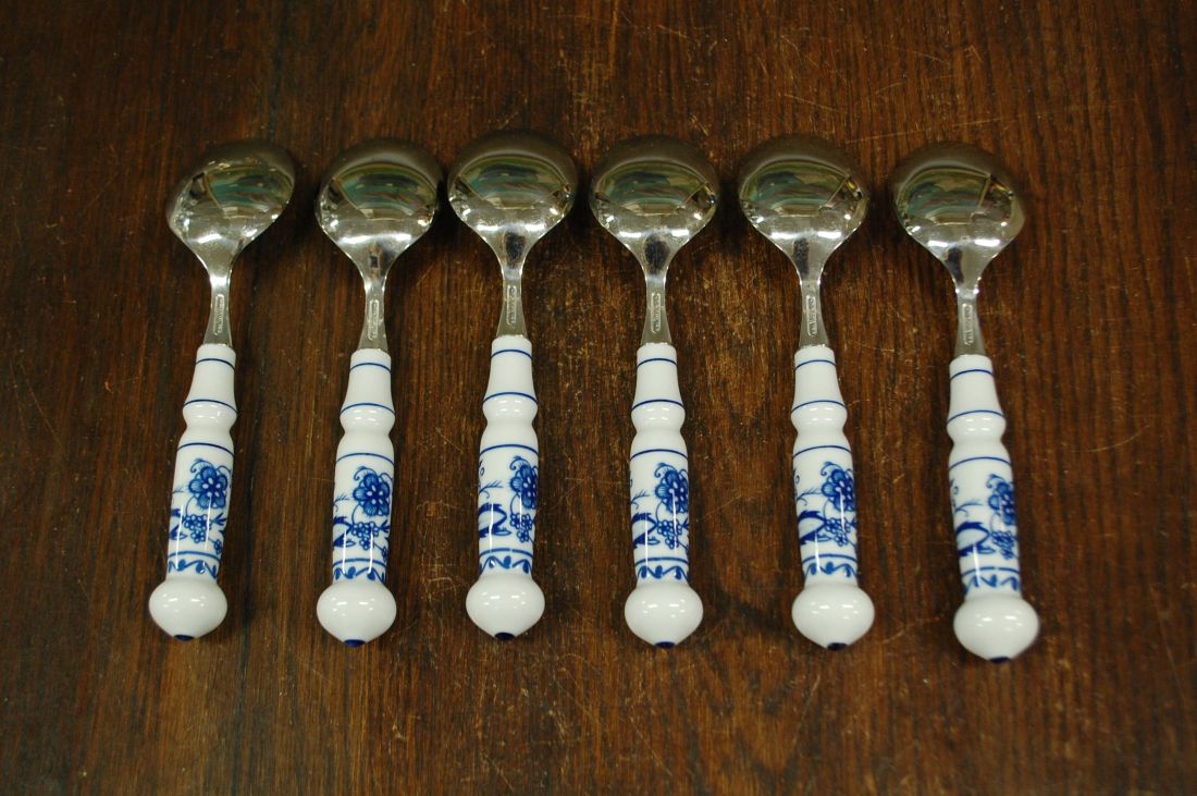 Pikkus 195mm. Sini-valgete sibulamustriiste käepidemetega supilusikad. Saksamaa. Metallosal esneb kriime. Tarne pakiautomaati