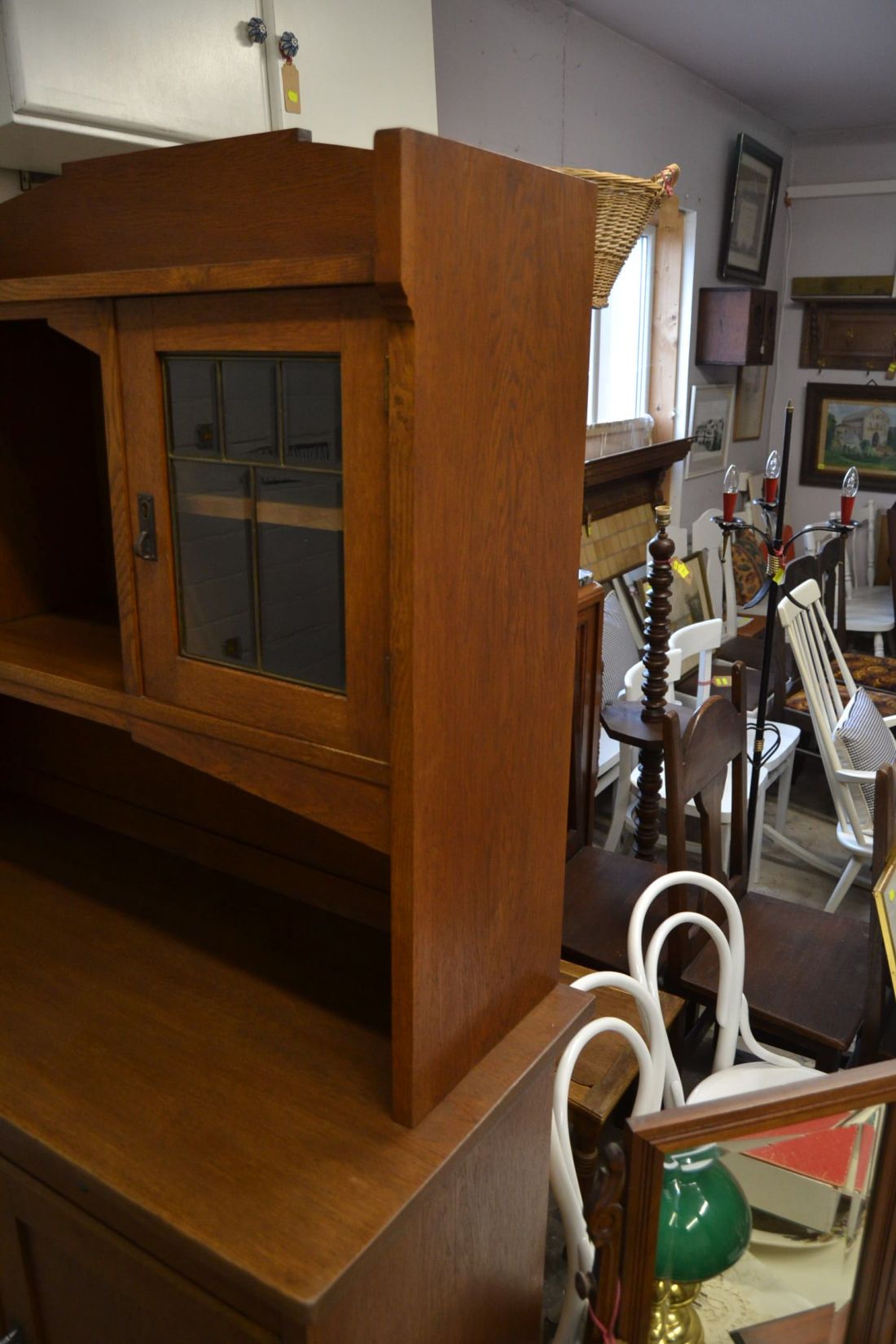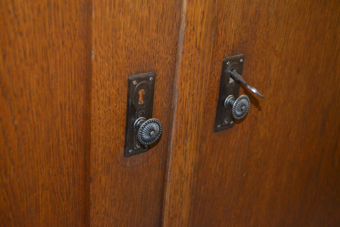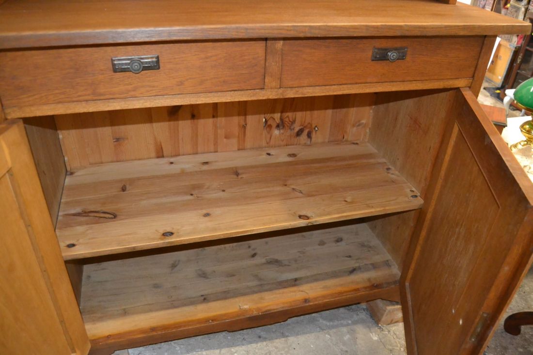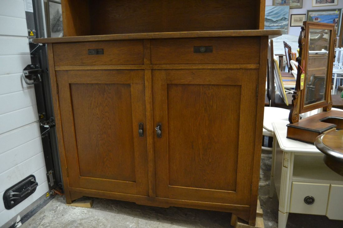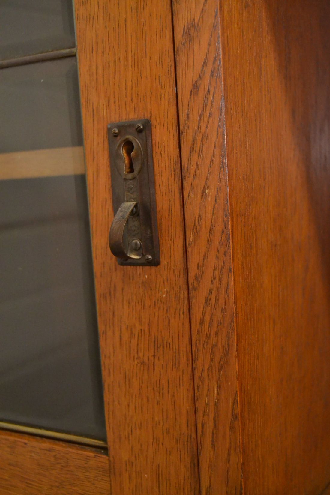 Mõõdud 1250x545, kõrgus 2020 mm. Suur raske vanem puhvetkapp. Ülal kahe uksega kapi osa, kappides riiul, ukse klaasid ruudumustriga, faasitud. Keskel avatud riiul. Allosas kaks sahtlit ja kahe uksega kapi osa. Kapis riiul. Uste lukud töökorras, 1 võti. Esineb kriime, täkkeid, kasutustunnuseid, toonierinevusi, parandusjälgi. Transport kahes osas. Riiulid ja sahtlid samuti eemaldatavad.