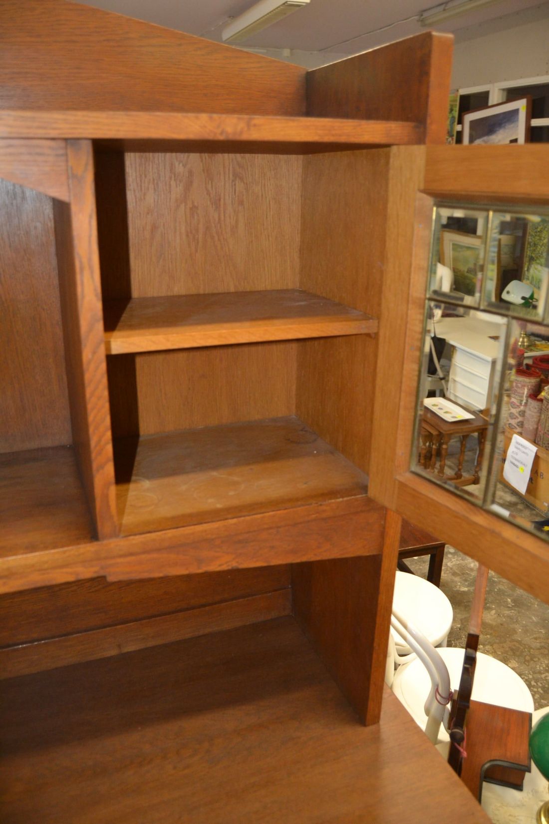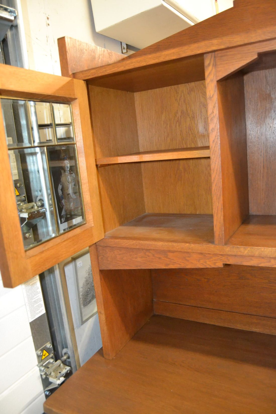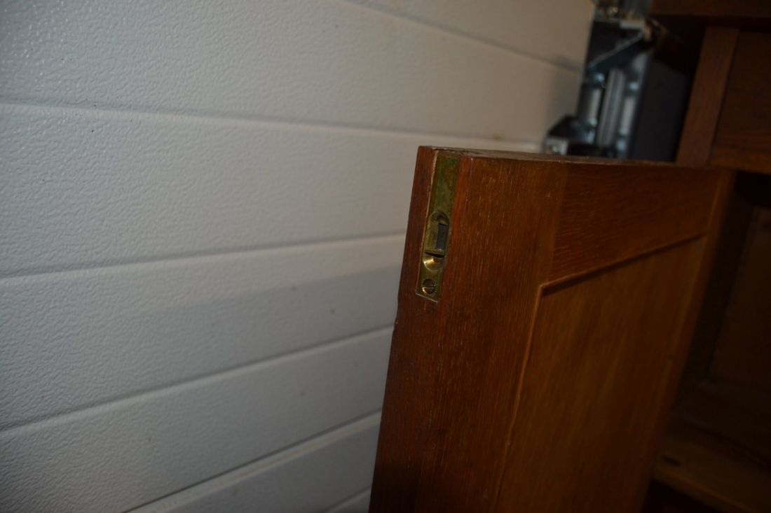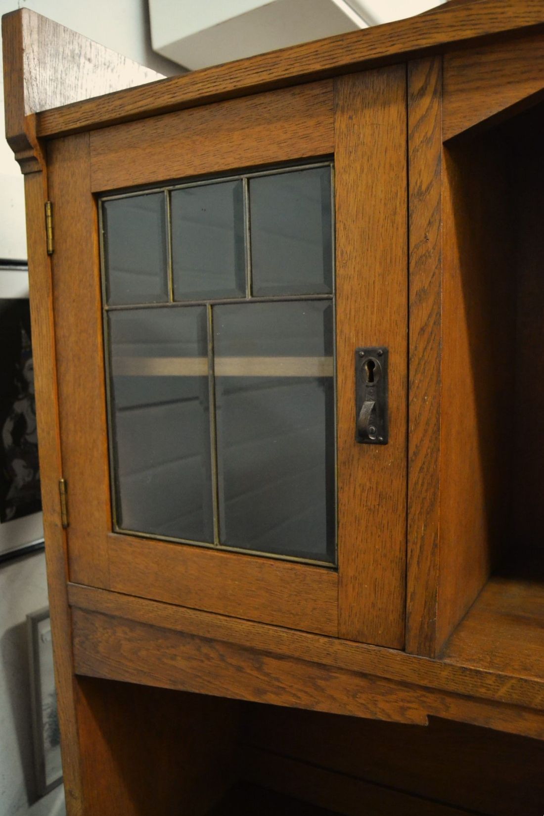 Mõõdud 1250x545, kõrgus 2020 mm. Suur raske vanem puhvetkapp. Ülal kahe uksega kapi osa, kappides riiul, ukse klaasid ruudumustriga, faasitud. Keskel avatud riiul. Allosas kaks sahtlit ja kahe uksega kapi osa. Kapis riiul. Uste lukud töökorras, 1 võti. Esineb kriime, täkkeid, kasutustunnuseid, toonierinevusi, parandusjälgi. Transport kahes osas. Riiulid ja sahtlid samuti eemaldatavad.