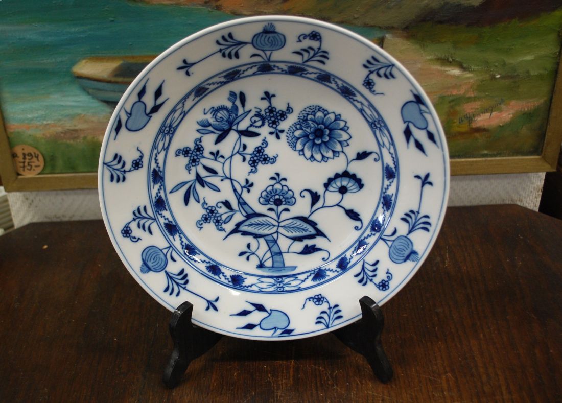 Läbimõõt 270mm, kõrgus 45mm. Sini-valge kena sibulamustriline ümar vaagen. Esineb väiksemaid kriime kasutusest. Tarne pakiautoaati
