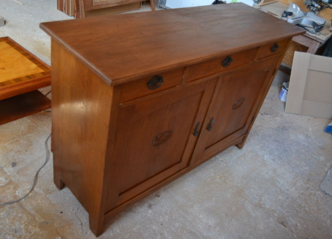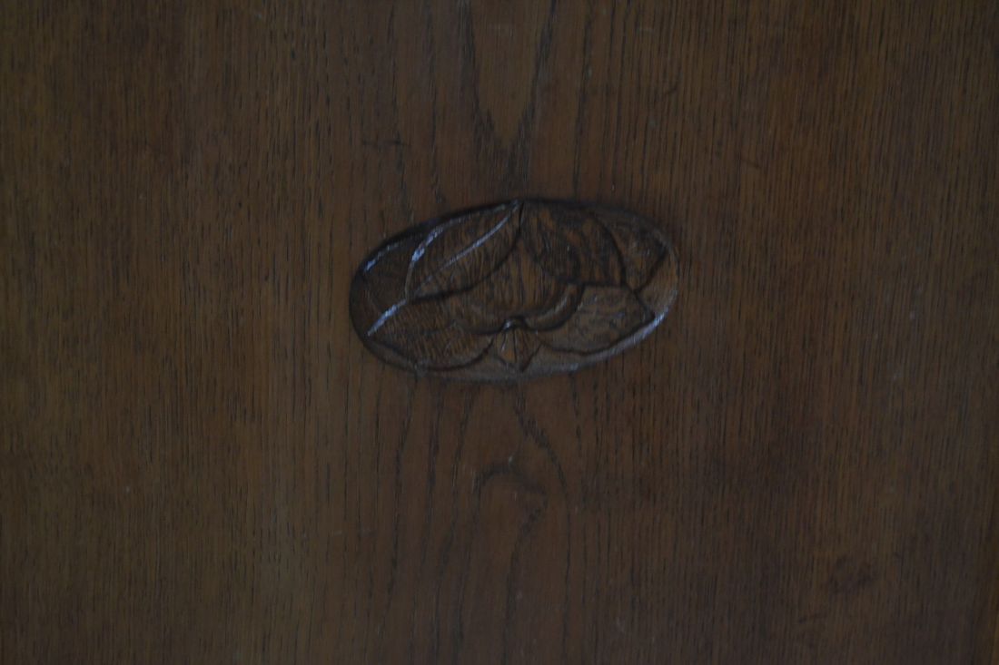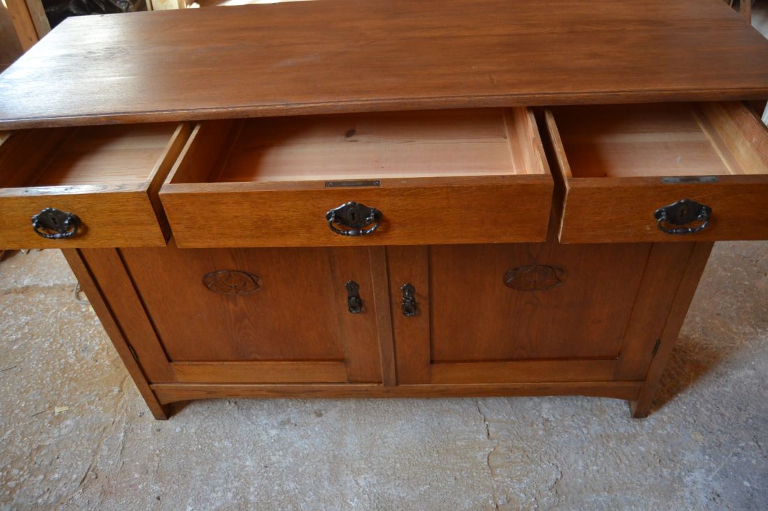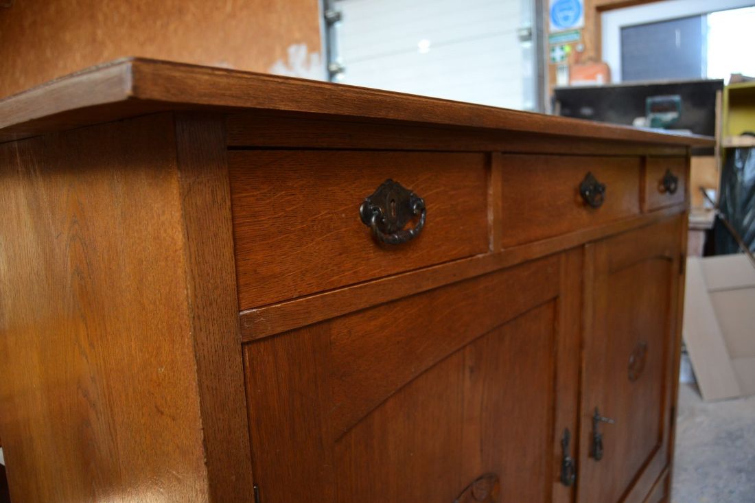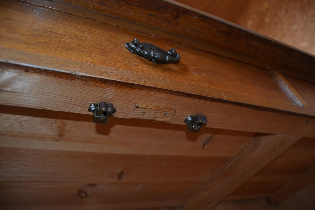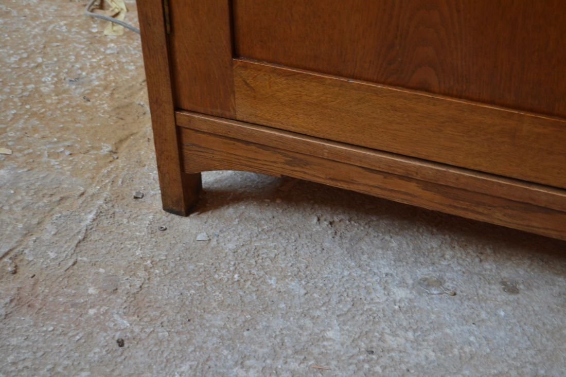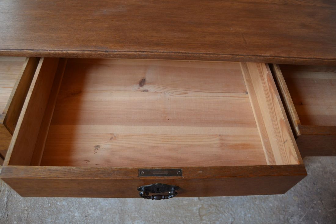 Mõõdud 1505x510. kõrgus 1010 mm. Vanem puidust raske kummut. Ülal 3 sahtlit, allosas kahe uksega kapi osa, kapis pikk riiul. Uste lukk käib vahelduva eduga, lisatud sulgumiseks rulllukustid. Esineb kriime, täkkeid, kasutustunnuseid, toonierinevusi. , mõned kuivamispraod, väiksemad killuvead.