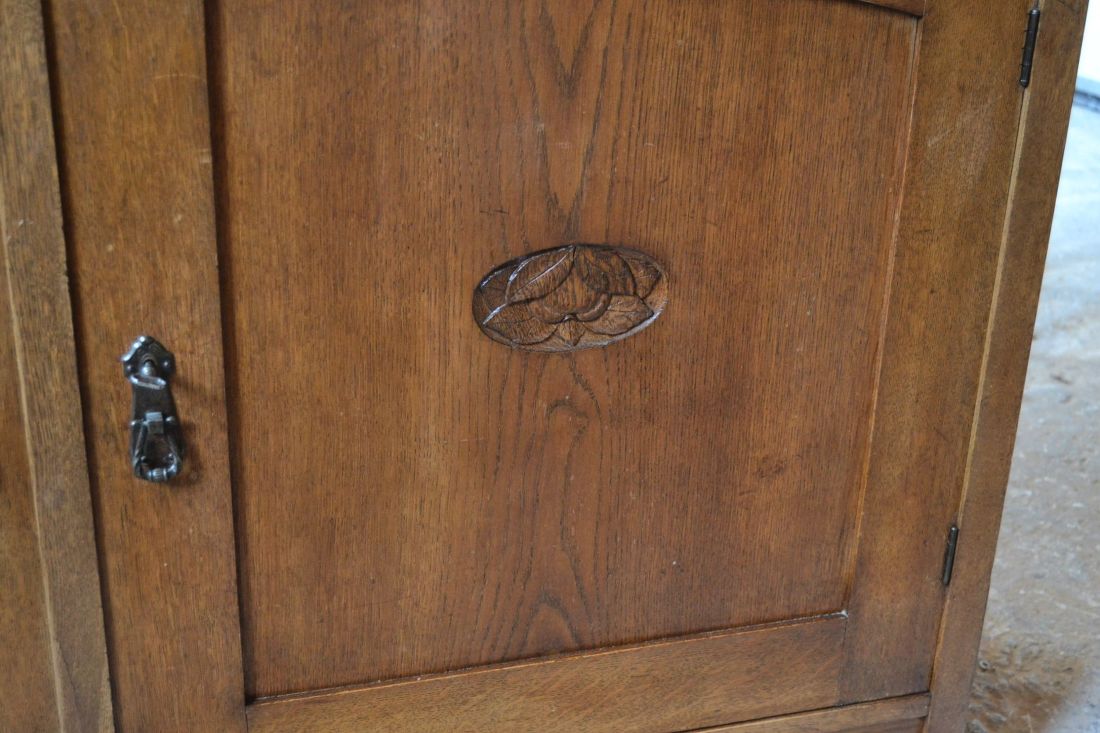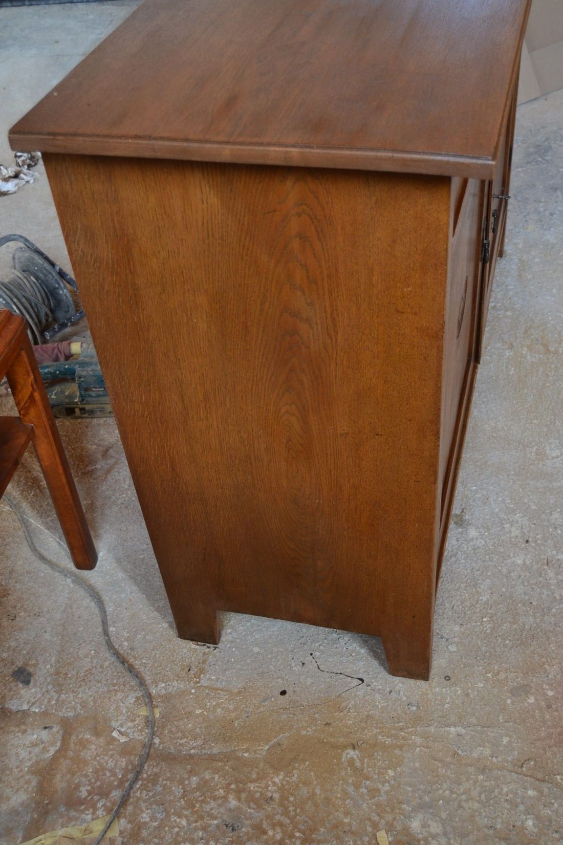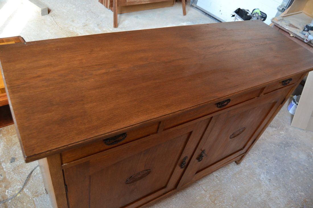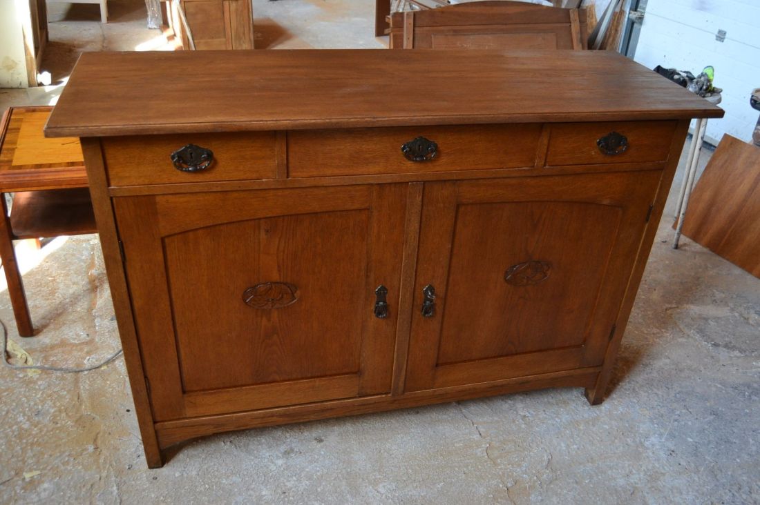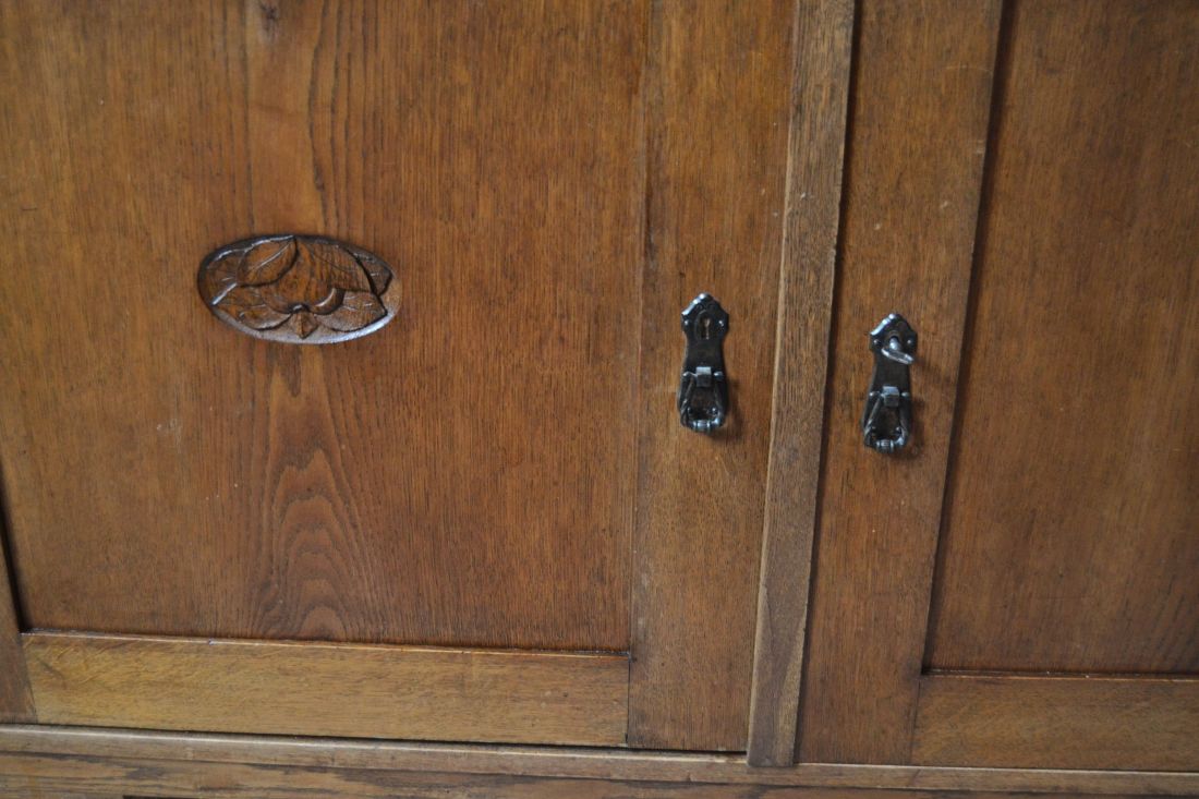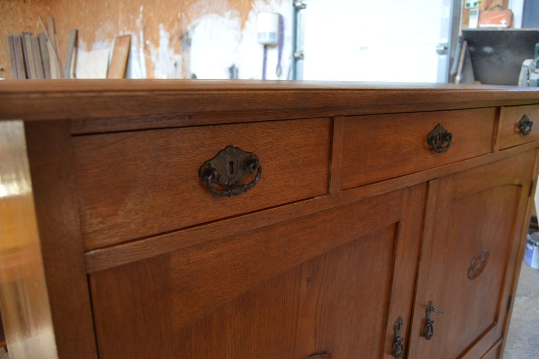 Mõõdud 1505x510. kõrgus 1010 mm. Vanem puidust raske kummut. Ülal 3 sahtlit, allosas kahe uksega kapi osa, kapis pikk riiul. Uste lukk käib vahelduva eduga, lisatud sulgumiseks rulllukustid. Esineb kriime, täkkeid, kasutustunnuseid, toonierinevusi. , mõned kuivamispraod, väiksemad killuvead.