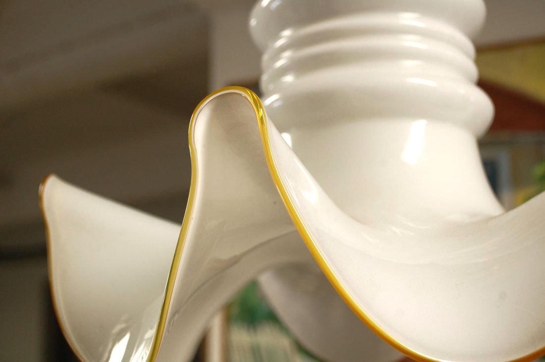 (n-7836) Valge klaaskupliga laelamp