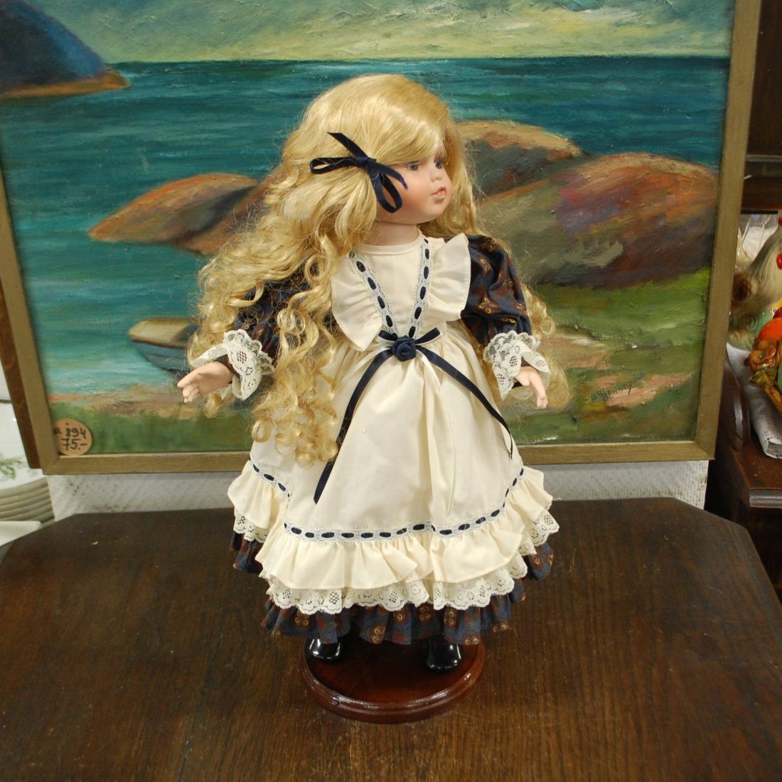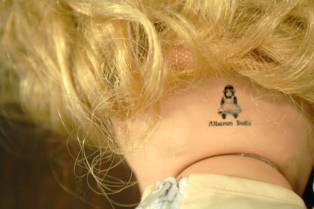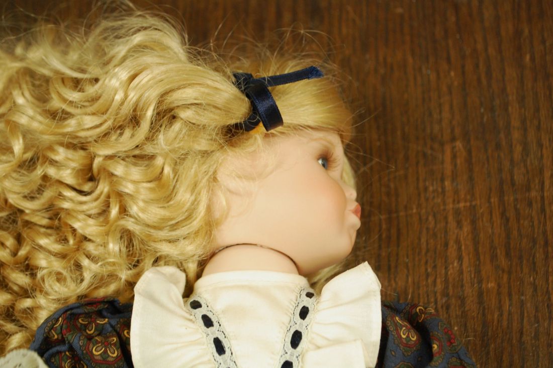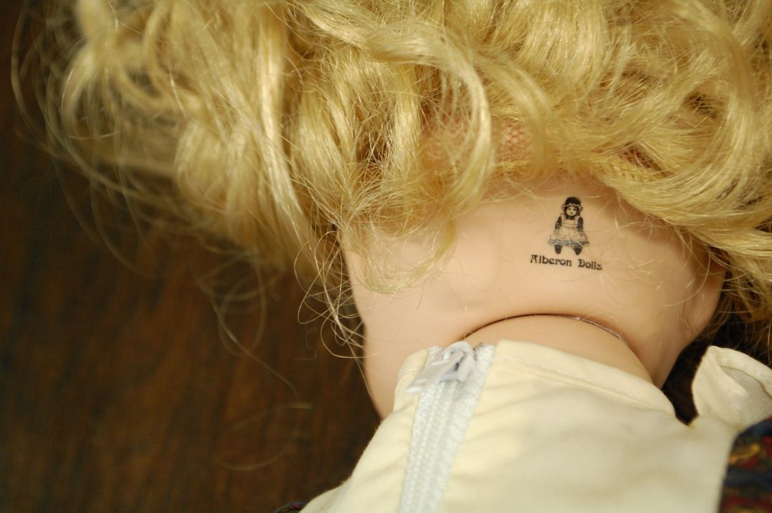 (n-7842) Alberon Dolls, lokkis juustega portselanist nukk alusel
