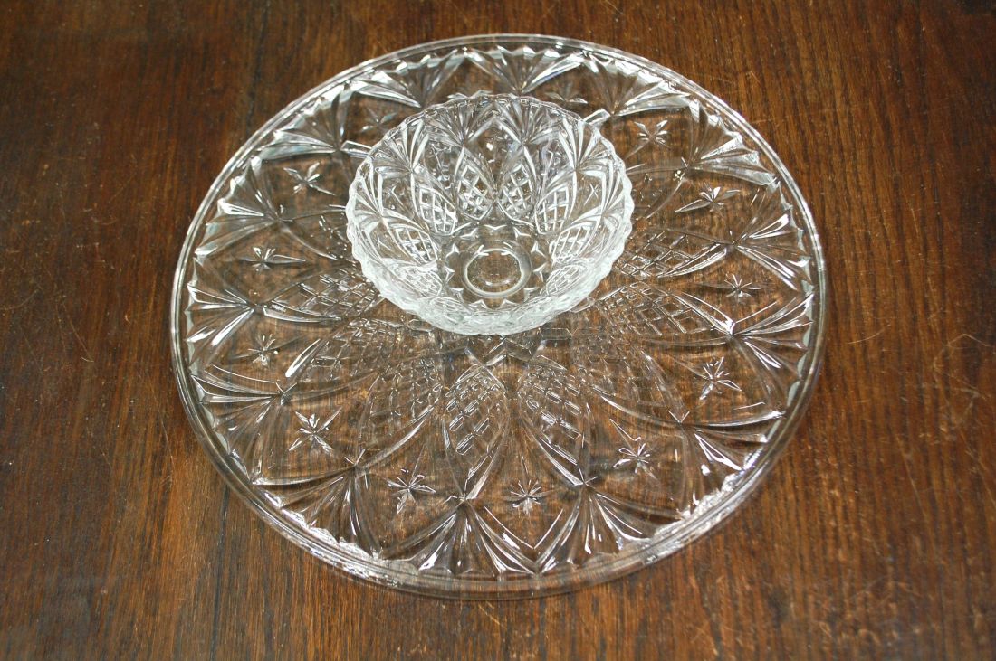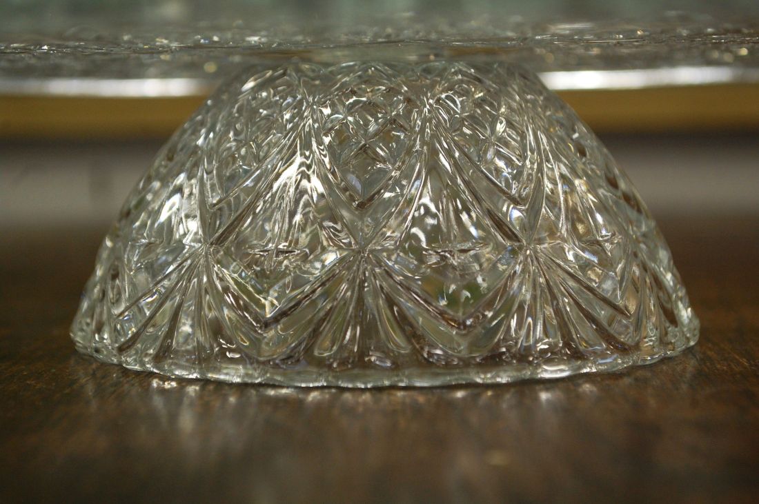 Mõõdud: 230 x 140mm, kõrgus 75mm. Kergelt kreemika tooniga, laineline serv, kellukatega dekoor. Esineb väiksemaid kriime, ja kullatise kulumist. Tarne pakiautomaati