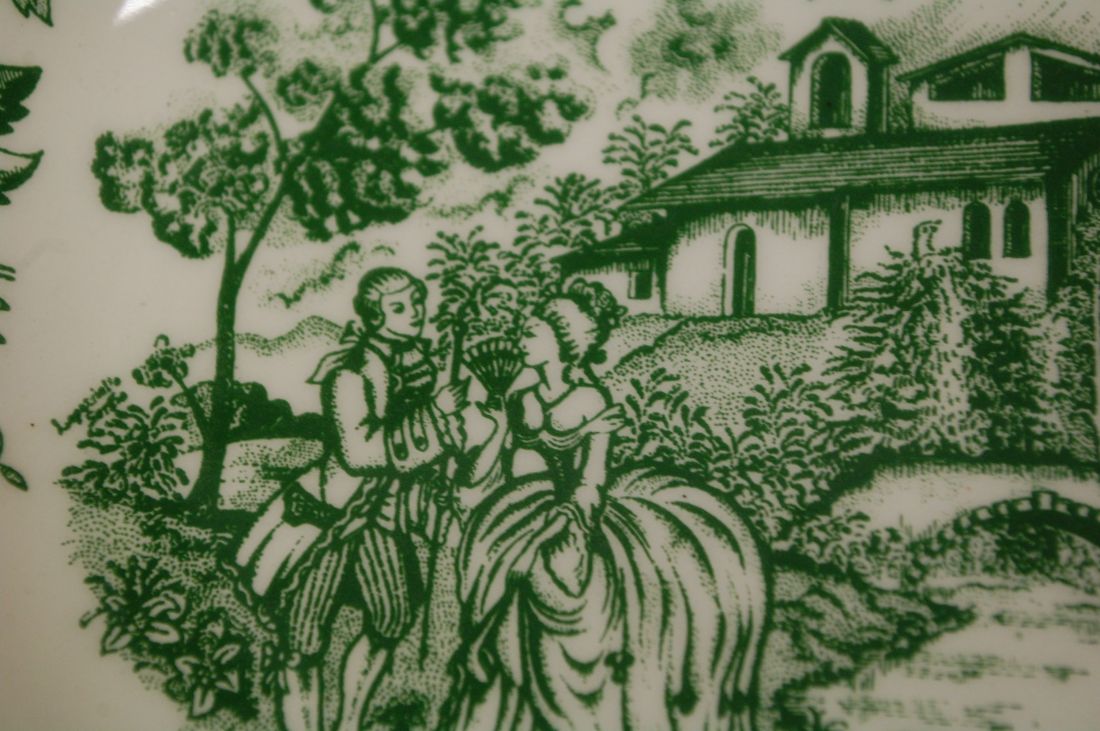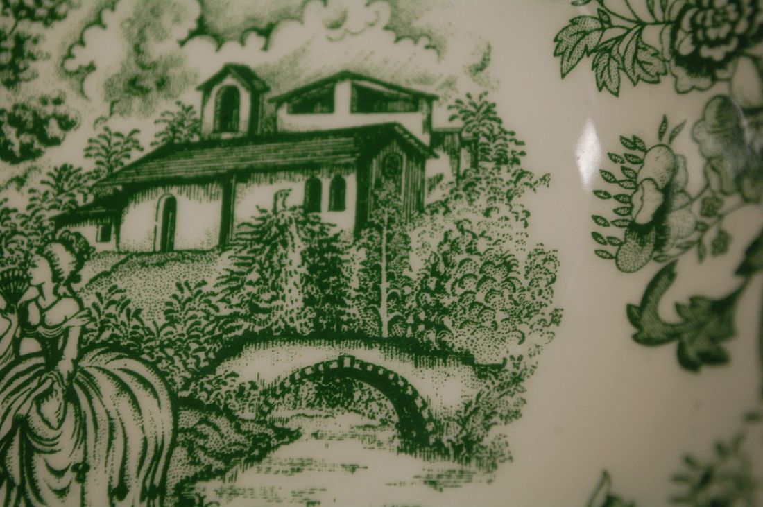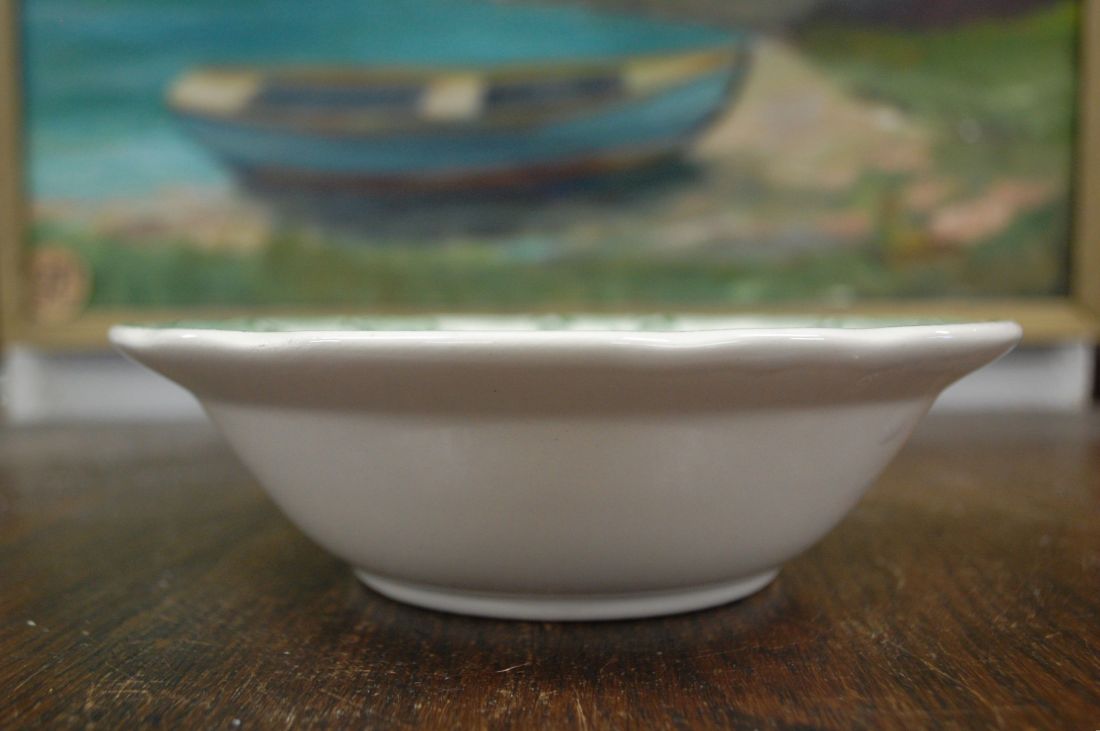 Läbimõõt 180mm, kõrgus 55mm. Rohelise dekoori- ja lainelise servaga kena inglise sari. Võib olla väiksemaid kriime ja esineb krakleed kasutusest. Tarne pakiautomaati