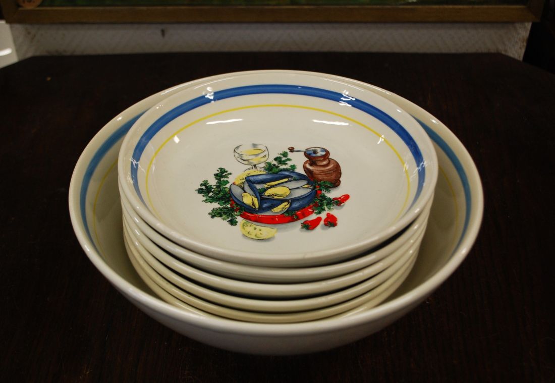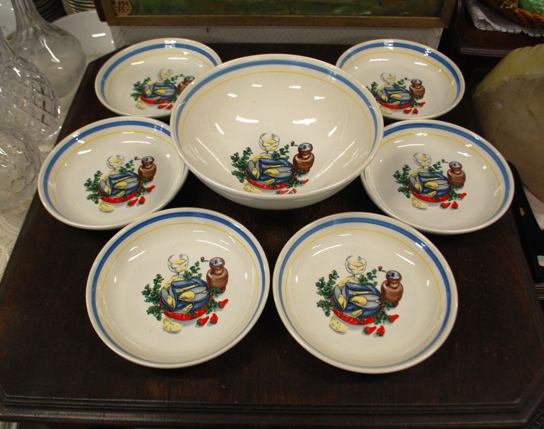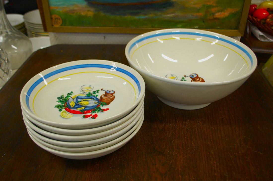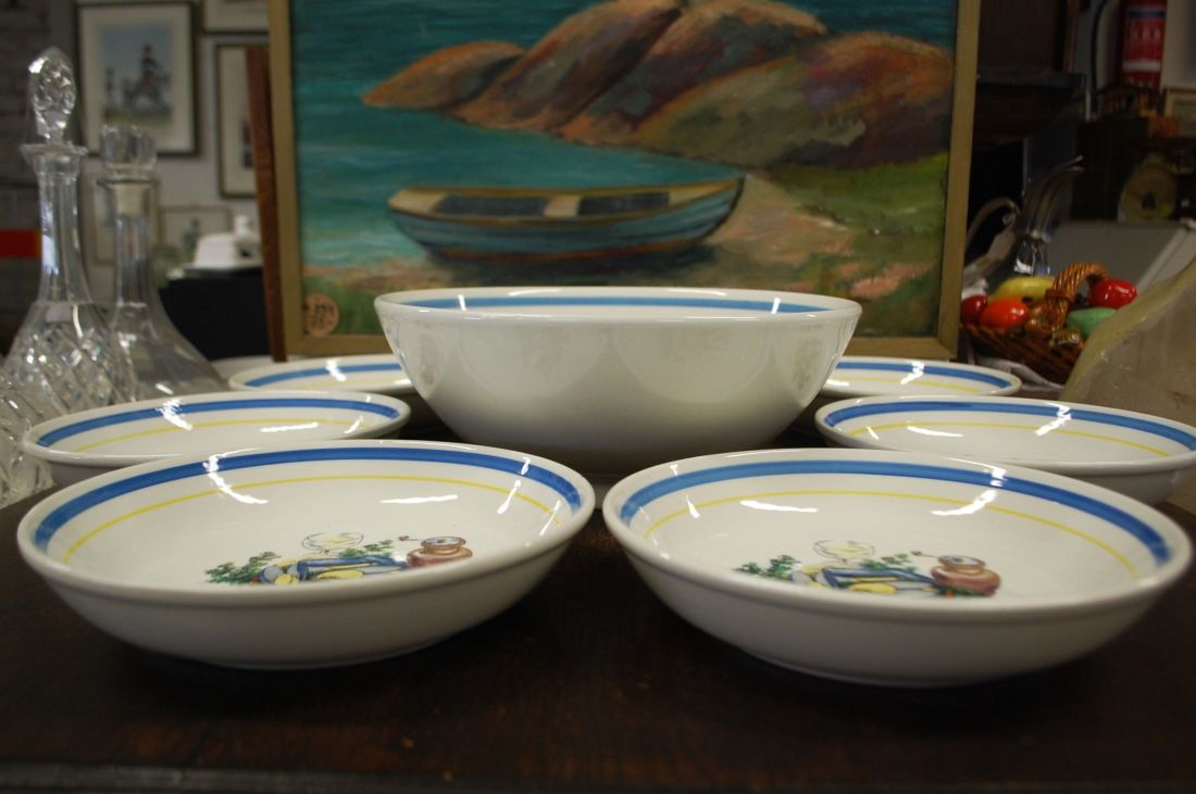 Mõõdud: kausi läbimõõt 380mm, kõrgus ca 120m. Kann 230 x 210mm, kõrgus 300mm. Kreemikas toon, pehmetes toonides lõvilõuad dekooriks, kaunis kuju. Inglismaa. Esineb väiksemaid kriime ja krakleed kasuusest. Tarne pakiautomaati